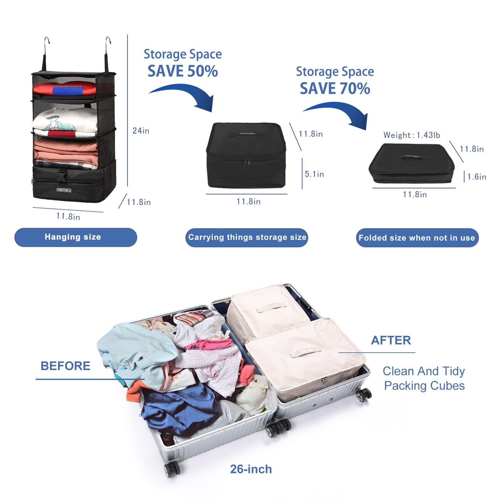 【折り畳み可能】旅行や出張などの場合は、荷物を入って折り畳んでスーツケースの中を綺麗にスッキリ整理できます。使わない時はコンパクトに折りたたんだ置けるので、邪魔になりません。