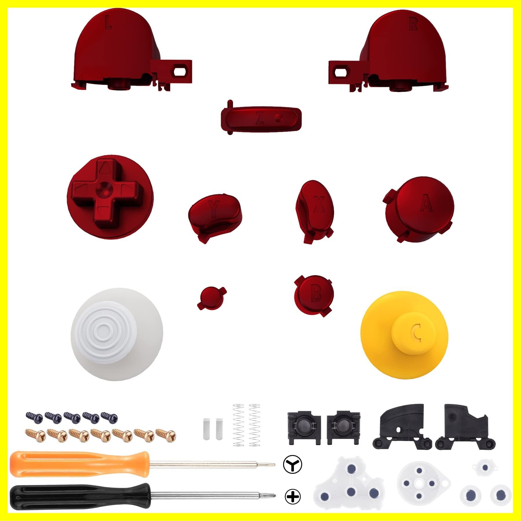 eXtremeRate GameCubeコントローラーに対応用交換ABXYやZ L Rや十字キーボタン、ゲームキューブコントローラーに対応用交換用DIYフルセットボタンサムスティック - コントローラーは付属していません【スカーレッド】