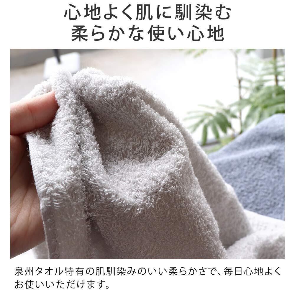 【日本製 泉州タオル】大阪泉佐野工場で織り、和泉山脈の天然水で洗い上げた泉州タオルです。タオルを織り上げてから水洗いや染色を行う泉州タオル独自の後晒製法により、使い始めから柔らかな肌触りと吸水性の良さを感じていただけます。外国製タオルが主流の昨今、身近なものだからこそこだわりたい日本製タオルです。