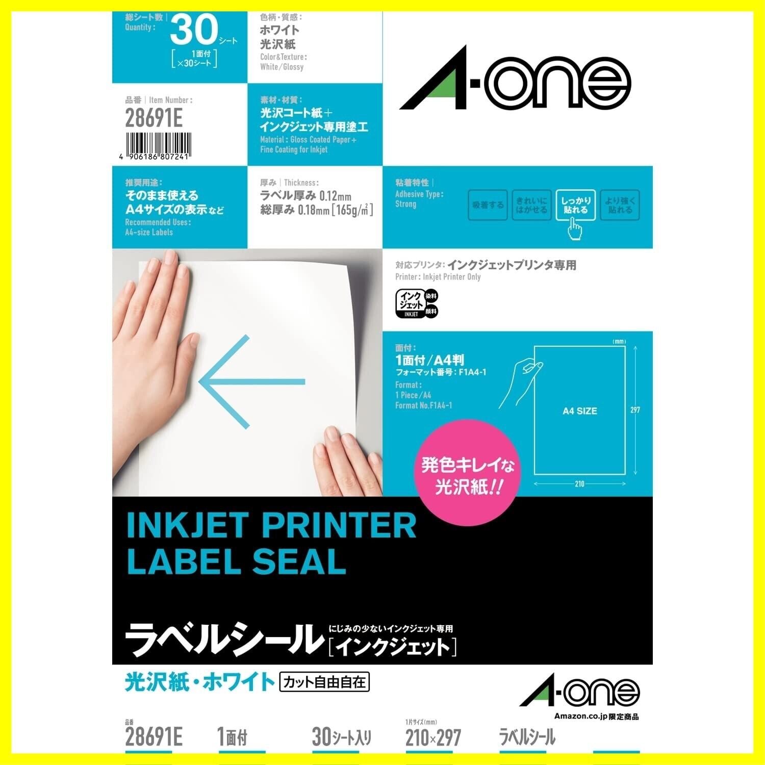 ●厚み:165g/㎡(0.18mm) ●ラベルサイズ:210mm×297mm ●入数:30シート