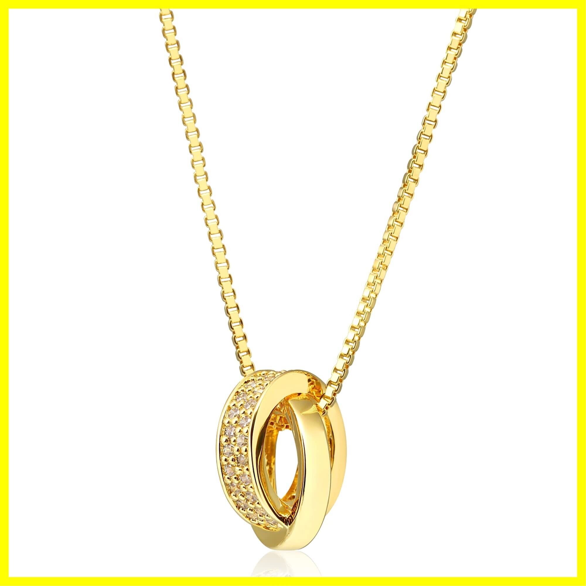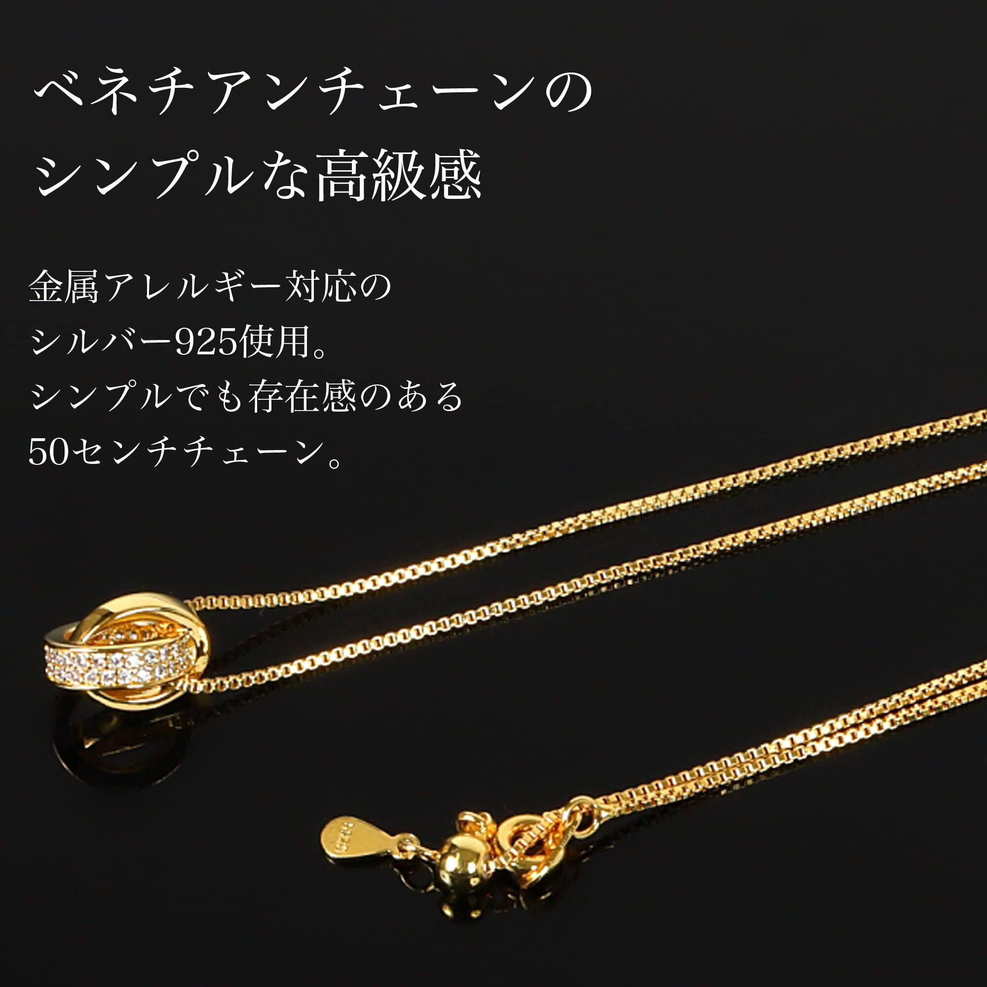 Aneige ネックレス レディース メンズ ダブルリング シルバー925 スワロフスキー ジルコニア 金属アレルギー対応 シンプル ペンダント ベネチアンチェーン 50cm 長さ調整可能 ギフト プレゼント