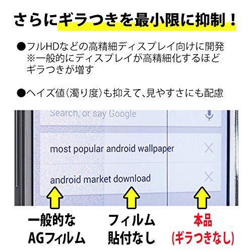 【指紋防止】画面に付着した気になる指紋跡が目立ちません。また、指すべりが滑らかで、タッチ操作がしやすいさらさらとした手触り感です。【映り込み防止(反射防止)&ギラつき防止】蛍光灯や周囲の景色などの画面への映り込みをほぼカットしますので、ディスプレイが見やすくなります。また、高精細ディスプレイ向けに開発されたフィルムの為、アンチグレア処理(AG加工)で生じる画面との干渉によるギラつきが最小限に抑えられています。
