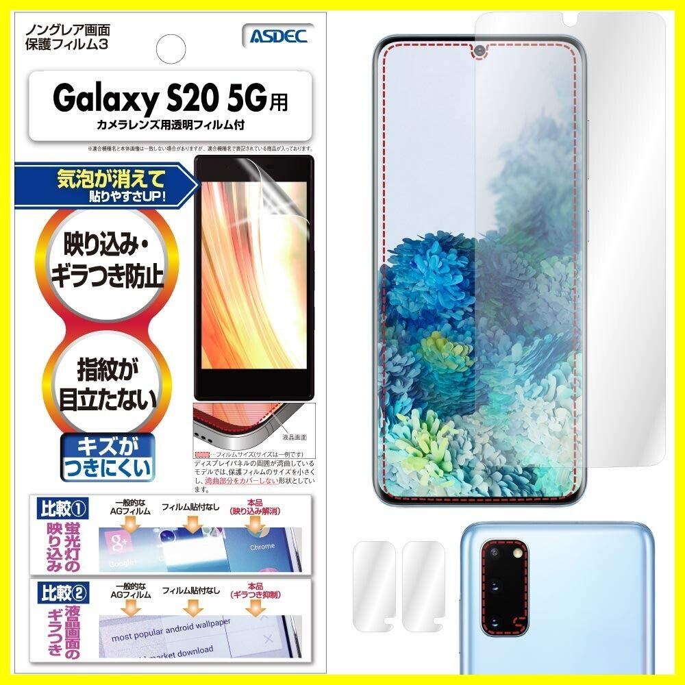 ASDEC Galaxy S20 5G フィルム カメラフィルム 指紋認証対応 反射防止 アンチグレア 日本製 防指紋 気泡消失 映込防止 NGB-SC51A/ギャラクシーエス20 5ジー SC-51A SCG01 保護フィルム ノングレアフィルム