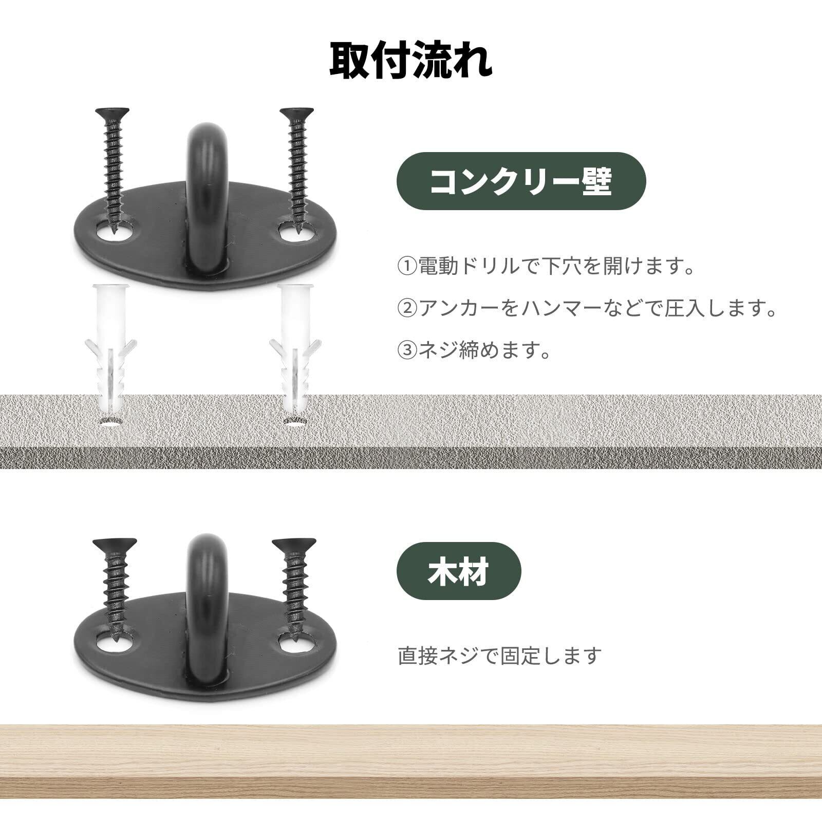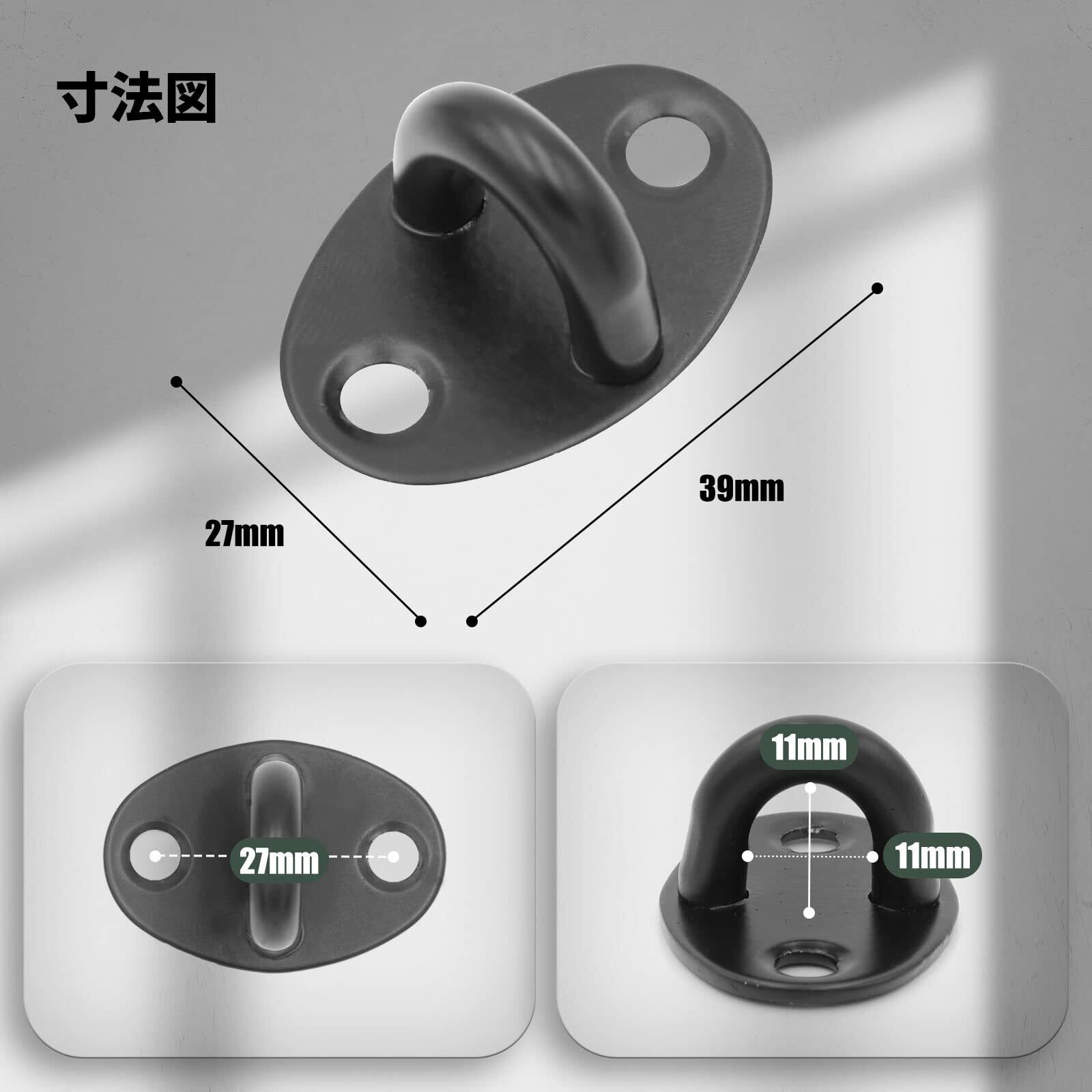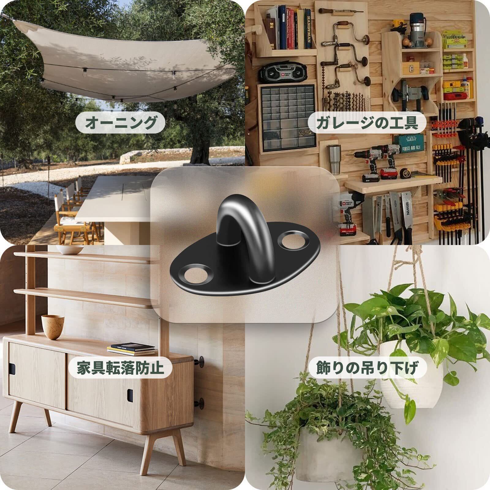 Raonlla アイプレート パッドアイ ステンレス 天井 フック 日除け サンシェード 金具 黒 4個入り