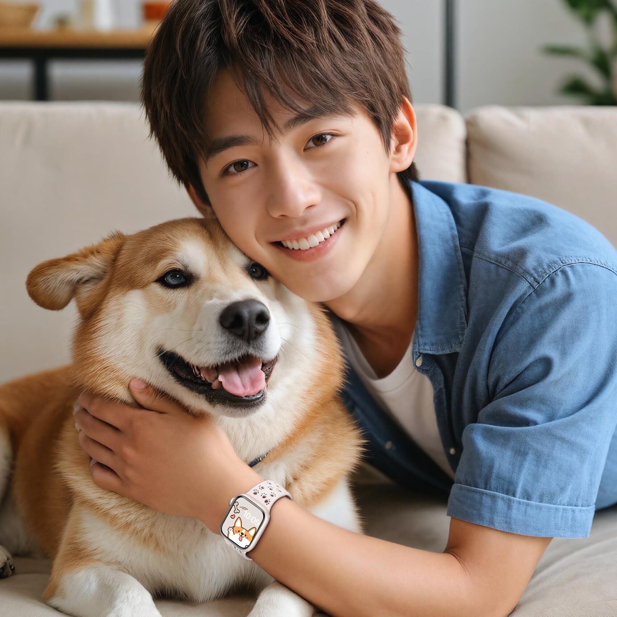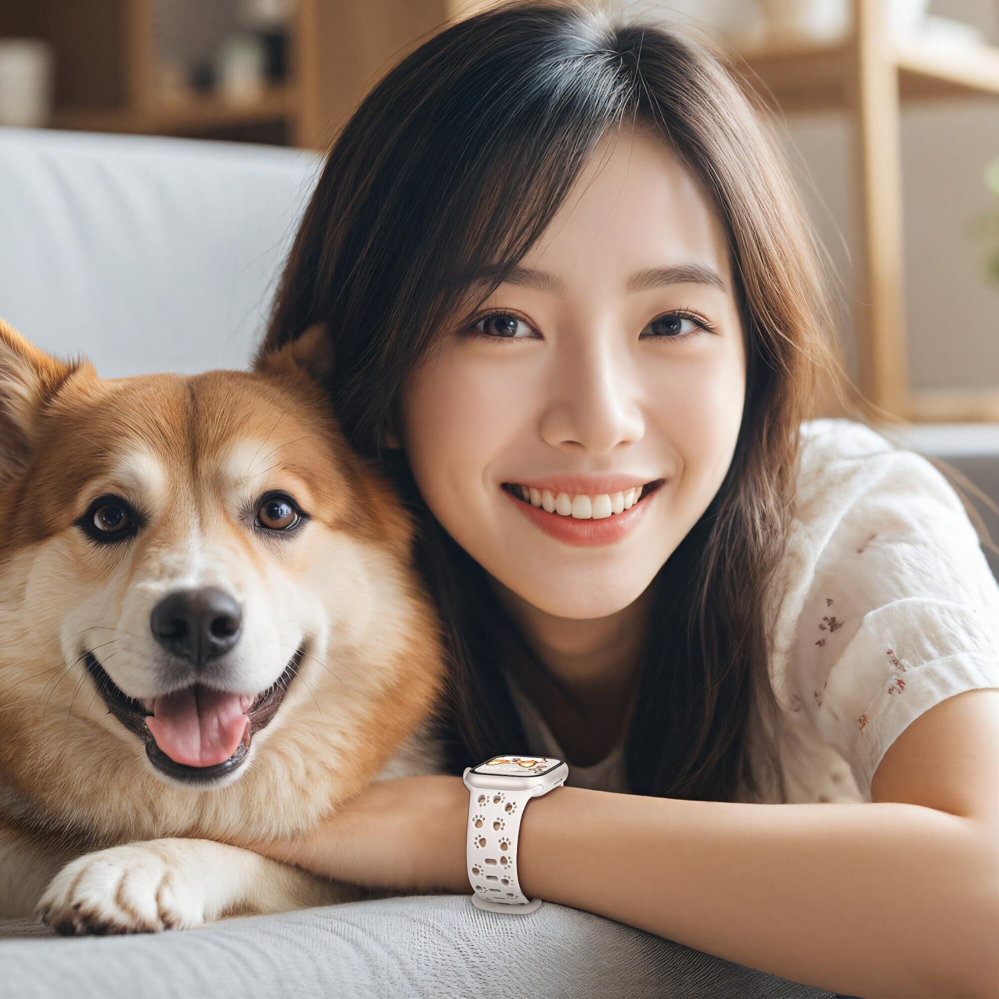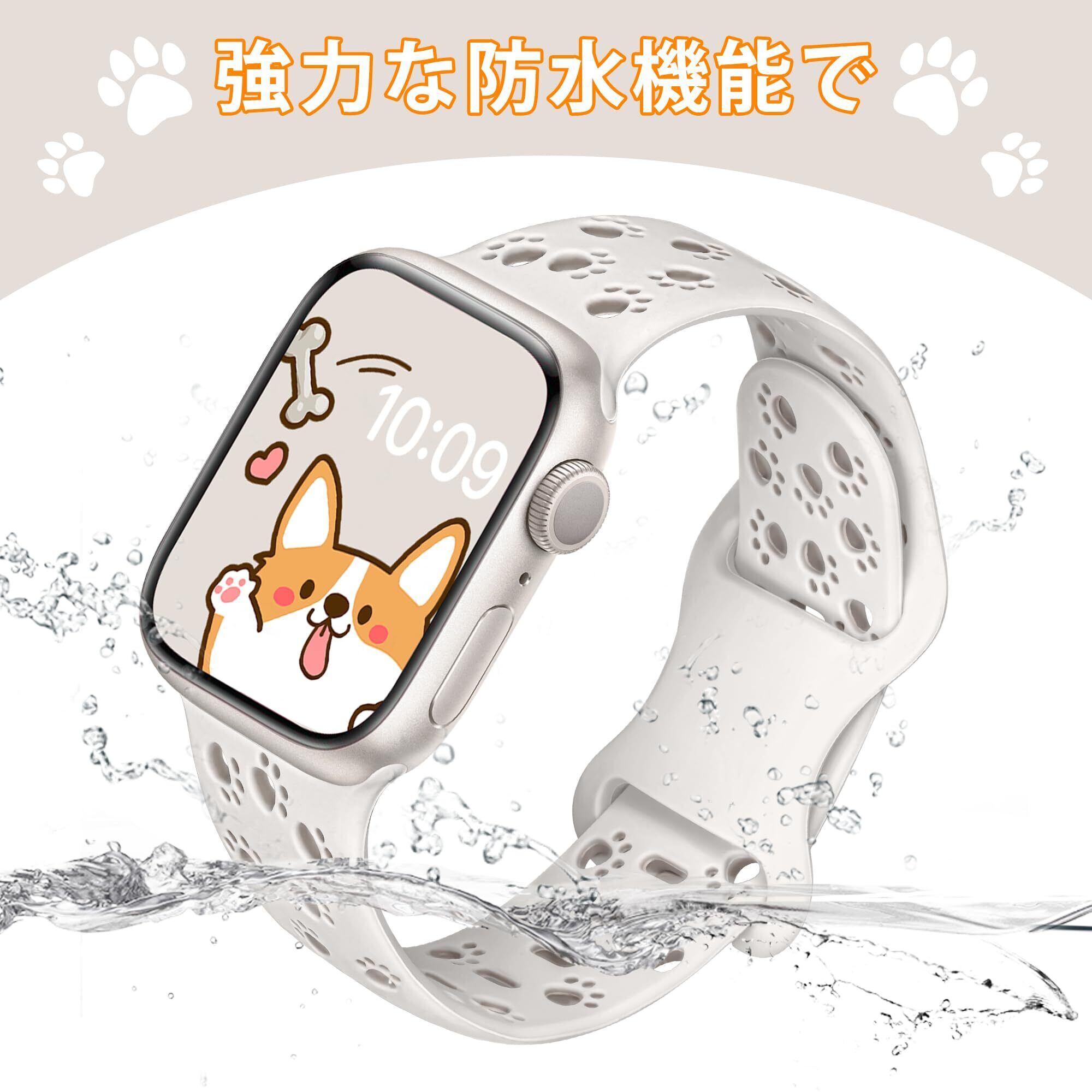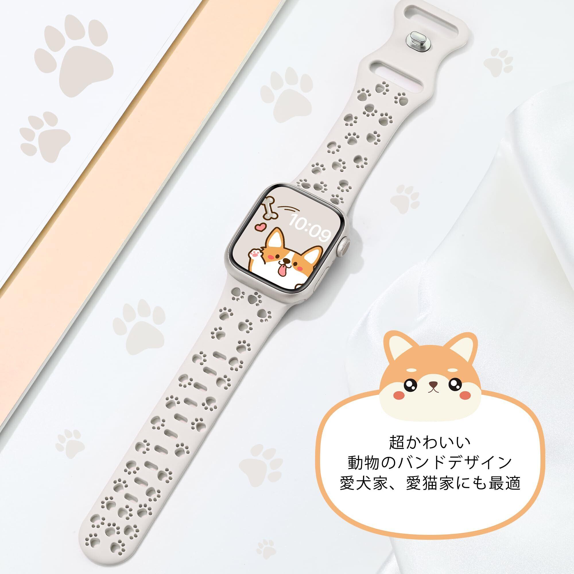 [SIBOYL] 可愛い肉球対応アップルウォッチ バンドスポーツ42mm(Series 11 10) 41mm 40mm 38mm、動物、猫、犬好きのための互换アップルウォッチ バンド シリコン、スーパーソフトApple Watch ベルト夏 蒸れない、快適性互换あっふウォッチバンドスポーツ、対応Apple Watch 11 10 Se 9 8 7 6 5 4 3 2 1-スターライト