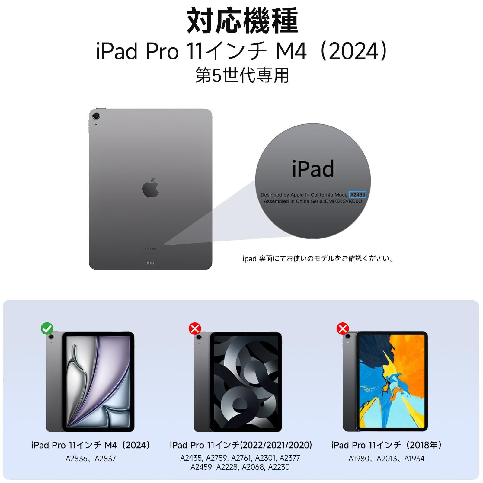 【適用機種】:iPad Pro 11インチ M4(2024、第5世代)専用です。モデル:A2836、A2837。他のiPadモデルと互換性がありません。