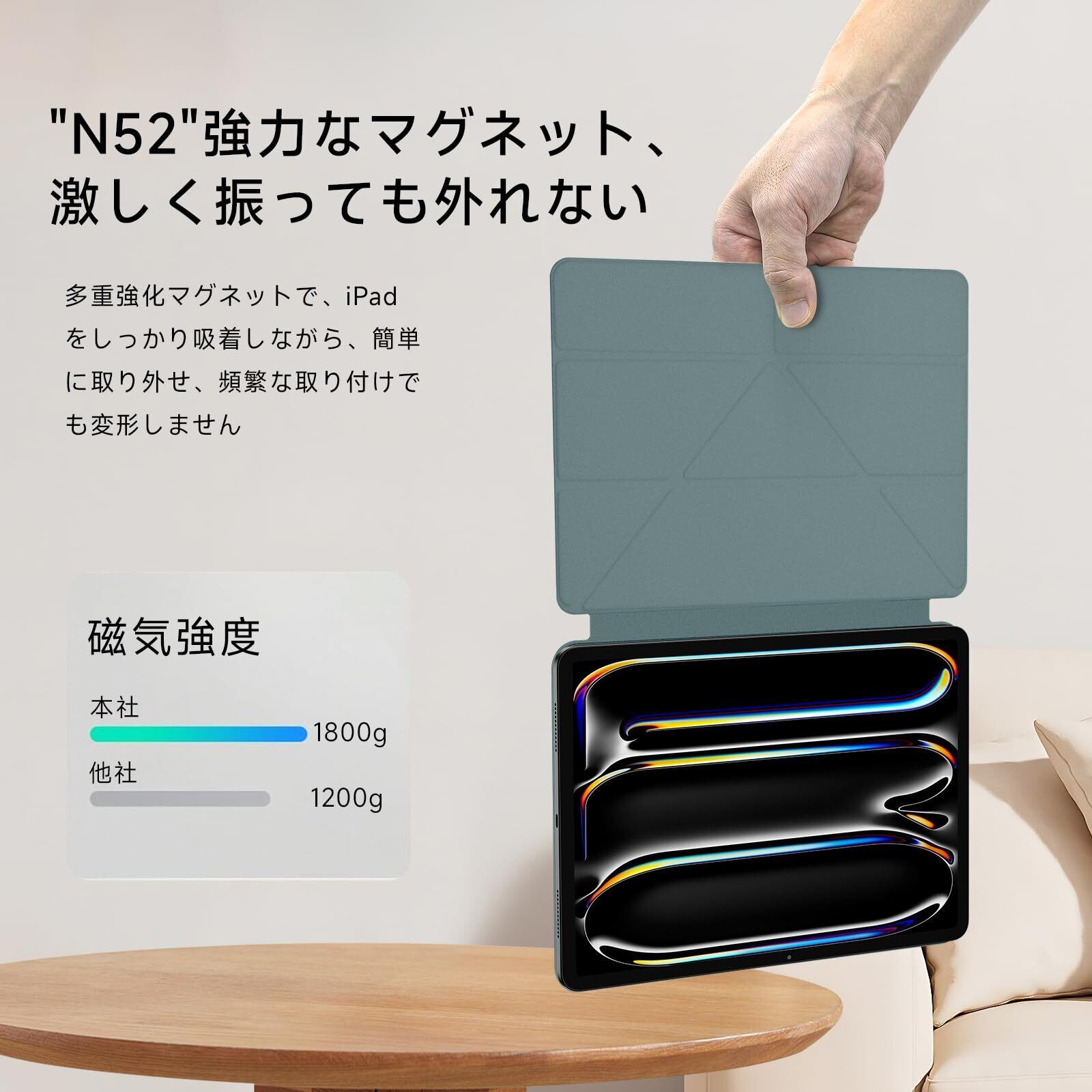 【強力マグネット吸着で取り付け簡単】マグネット式で、ケースの装着がスムーズに行えます。iPad本来の薄さを保ちながら、ケース自体も非常に軽量。強力な磁力でしっかりと固定され、ずれ落ちや剥がれの心配もありません。