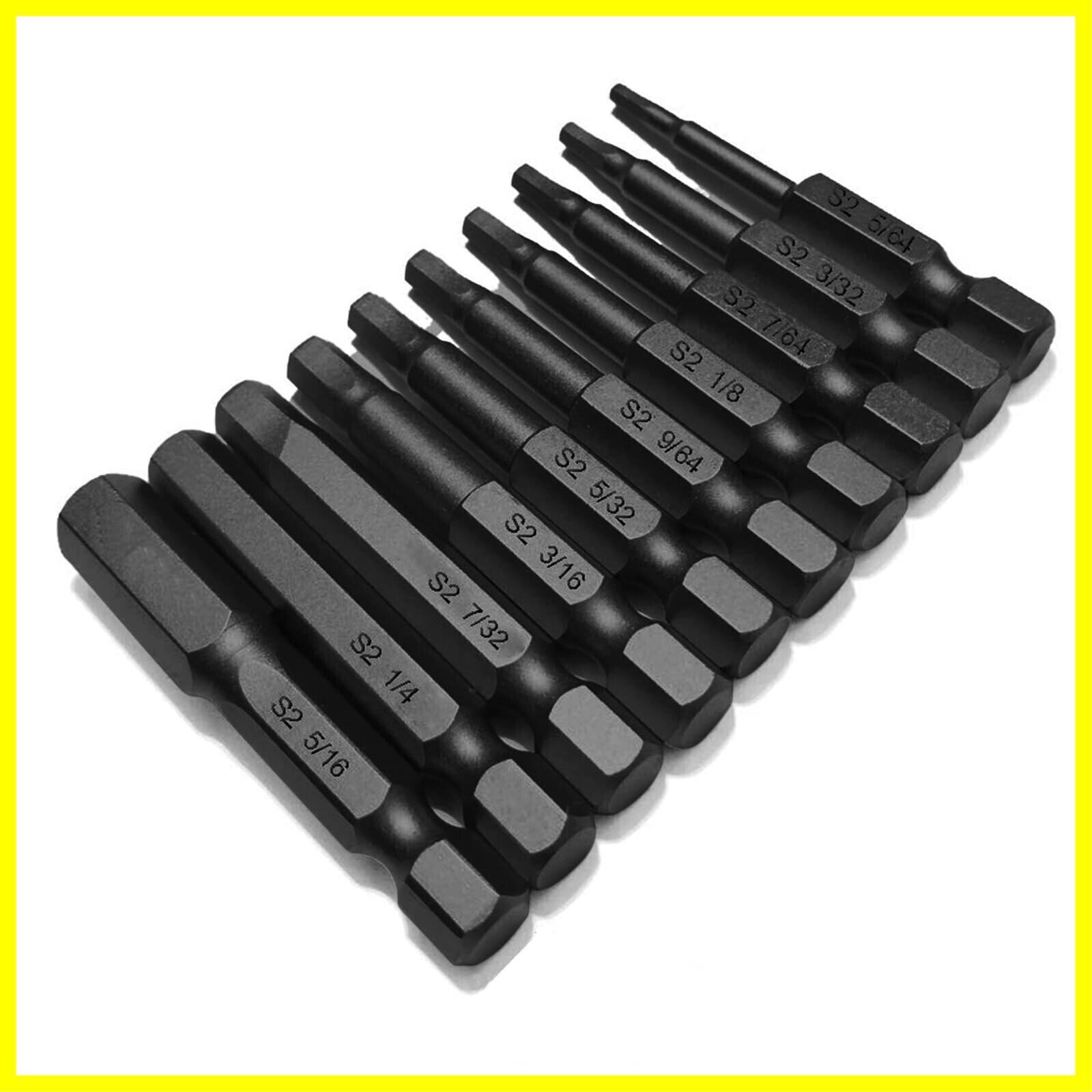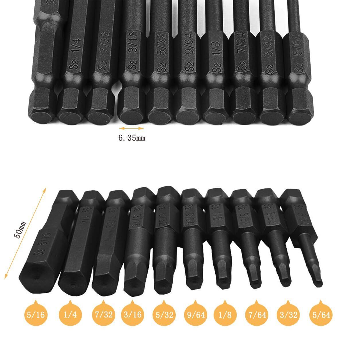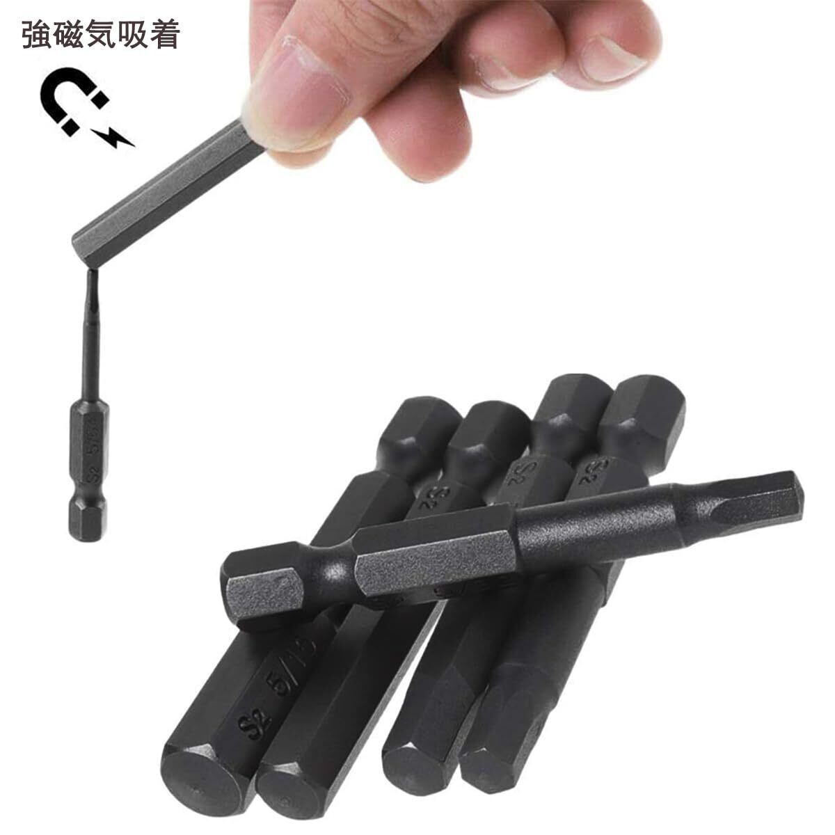 サムコス 六角レンチビット インパクトドライバー 精密ドライバー 六角轴 6.35mm 磁気吸着 ドリル 工具 50mm長六角ビット ブラック (10本セット)