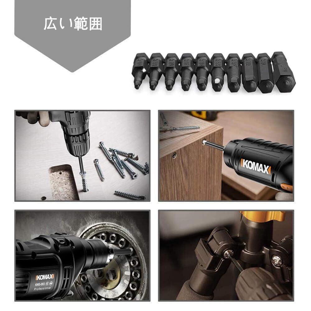 【セット内容】10 本ドライバービットセット。全長さ:50mm 。軸径:6.35mm六角軸(1/4インチ)。