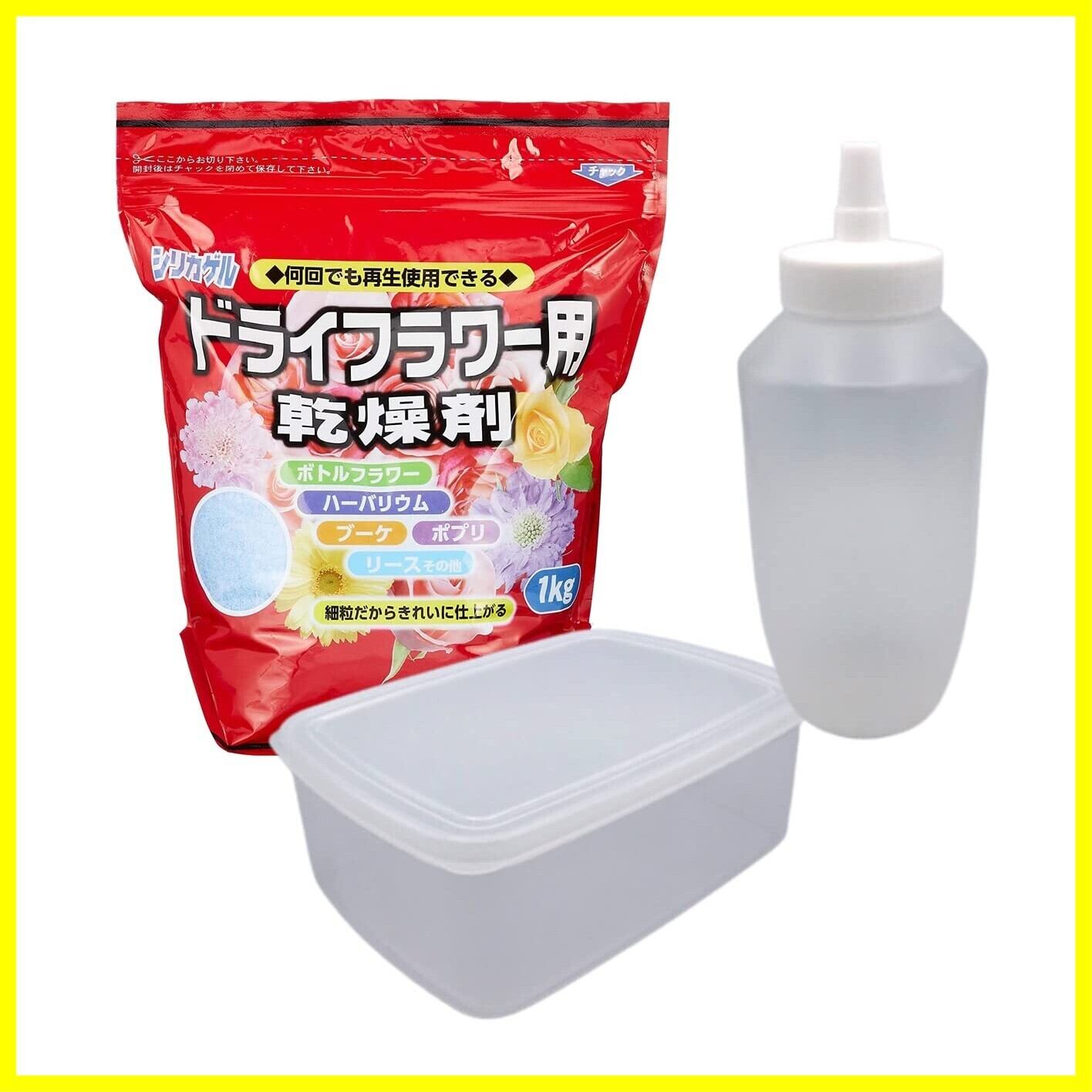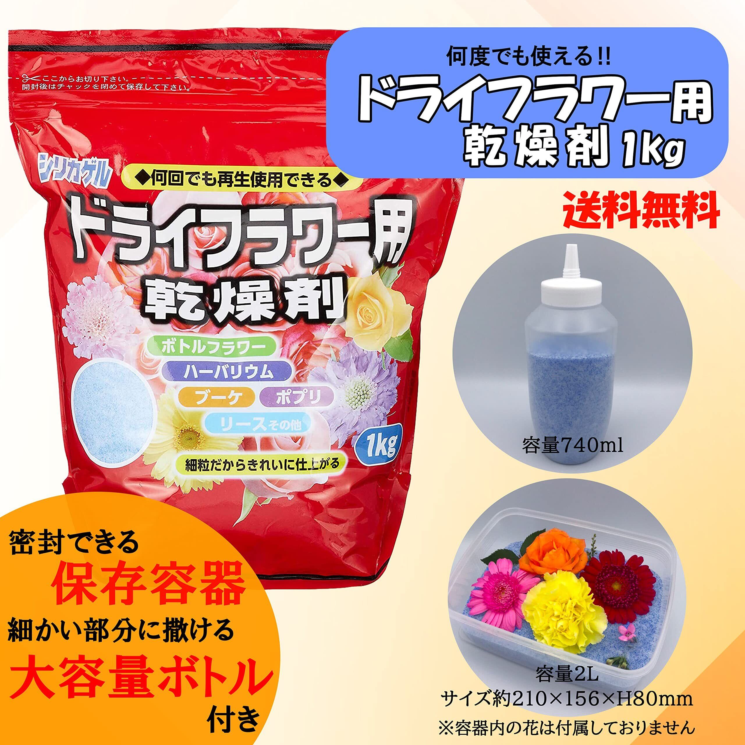 ドライフラワー用乾燥剤シリカゲル1kg 【容器セットNew!】専用ふりかけボトル(740ml)+大容量保存容器(2000ml)