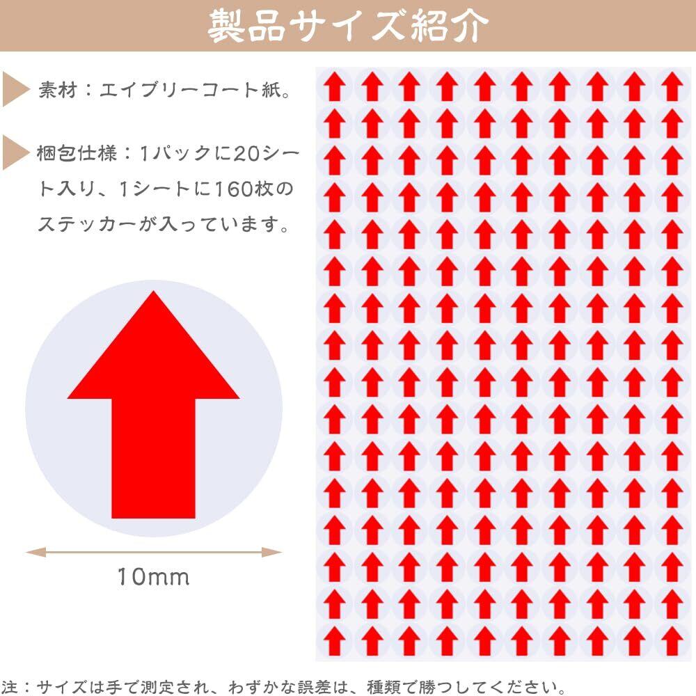 仕様:矢印シール20面 梱包仕様:1シートに160枚のステッカーが入っています 素材:エイブリーコート紙 形:円形 カラー:レッド。