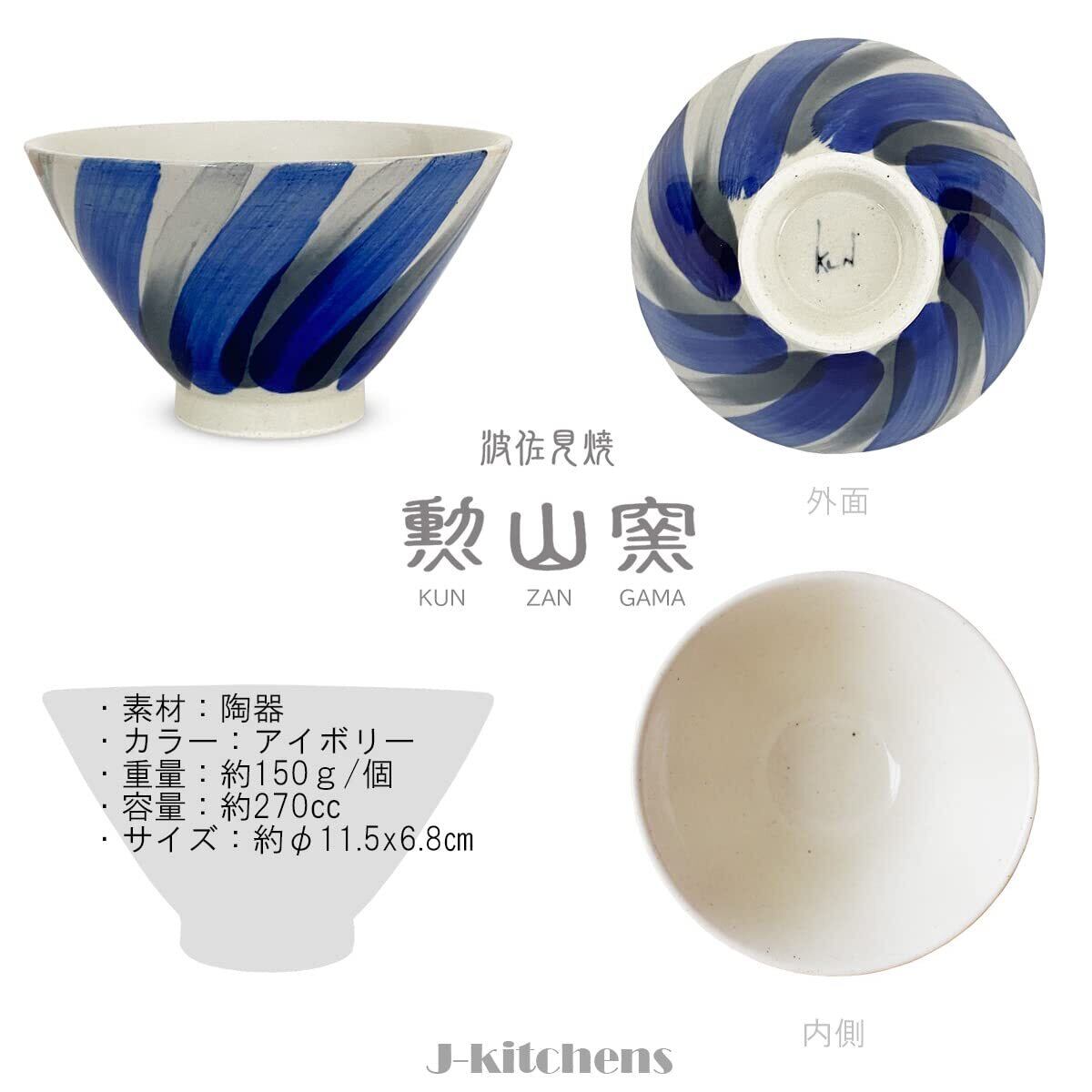 J-kitchens 勲山窯 茶碗 11cm 波佐見焼 日本製 刷毛目 ブルー