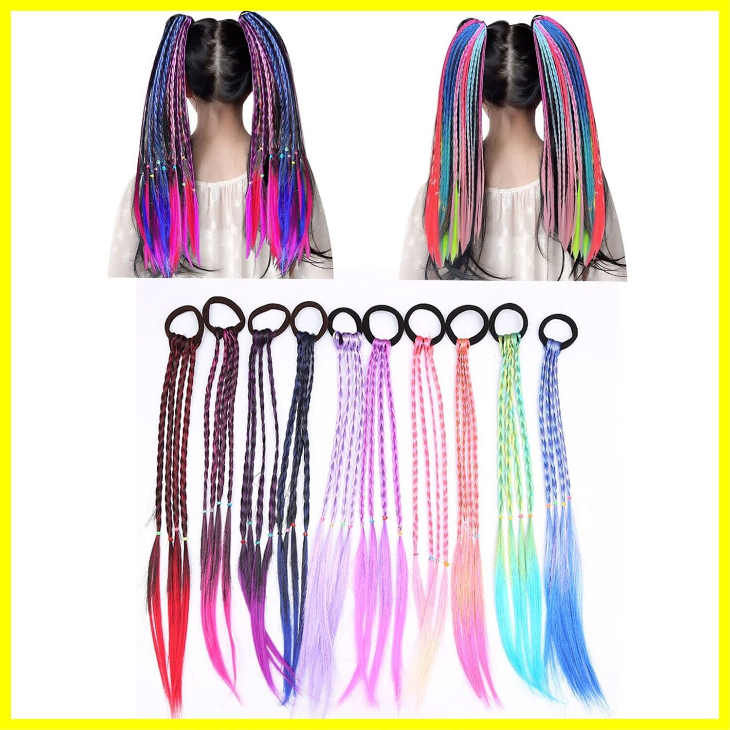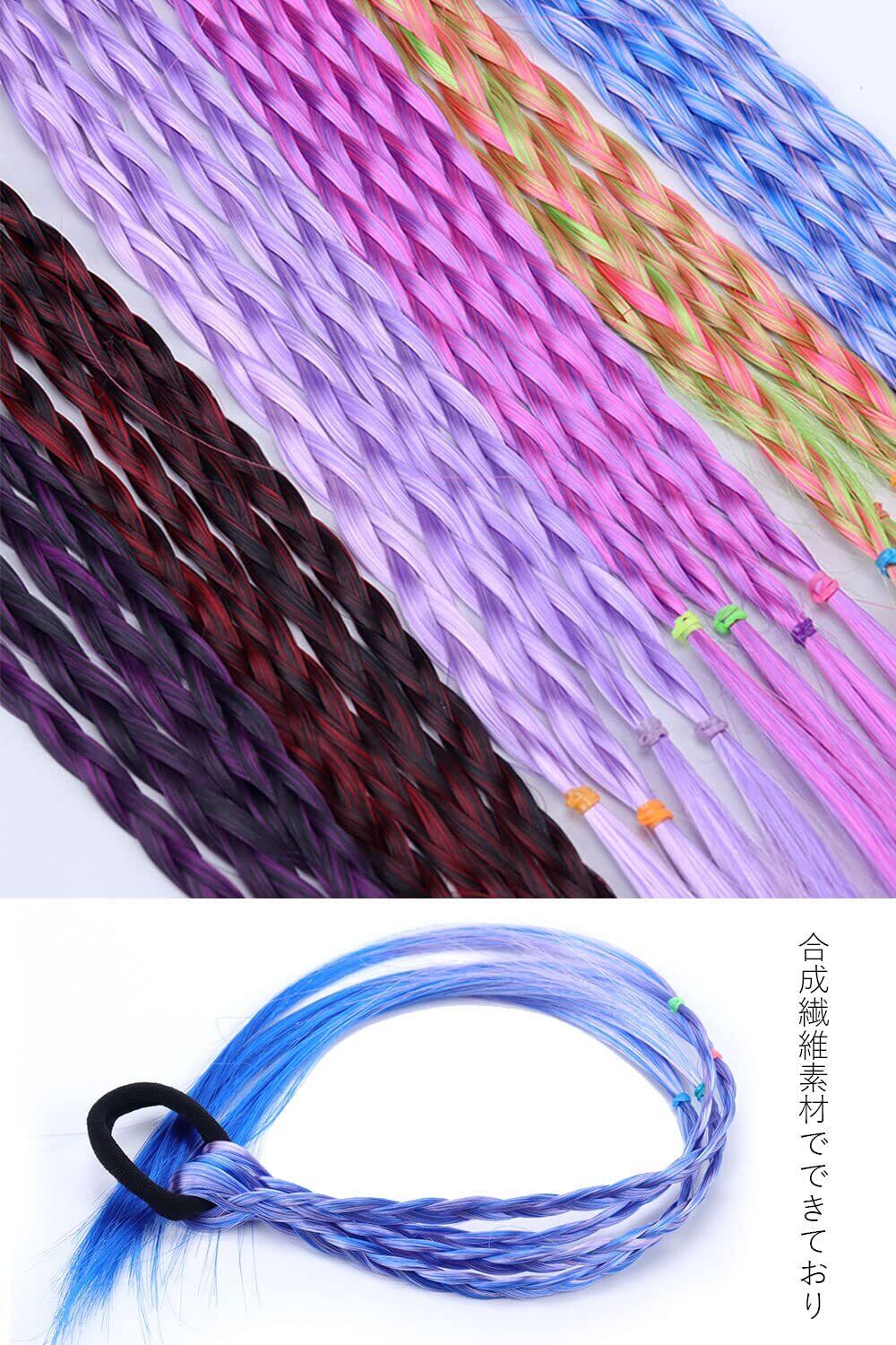 サムコス 10個セット ヘアエクステ ウィッグ エクステンション 可愛い カラフル グラデーション 三つ編み 編み込み ウィッグ エクステ 子供 大人 女性 男性 ポニーテール 発表会 パーティー 舞台用 派手髪 簡単装着