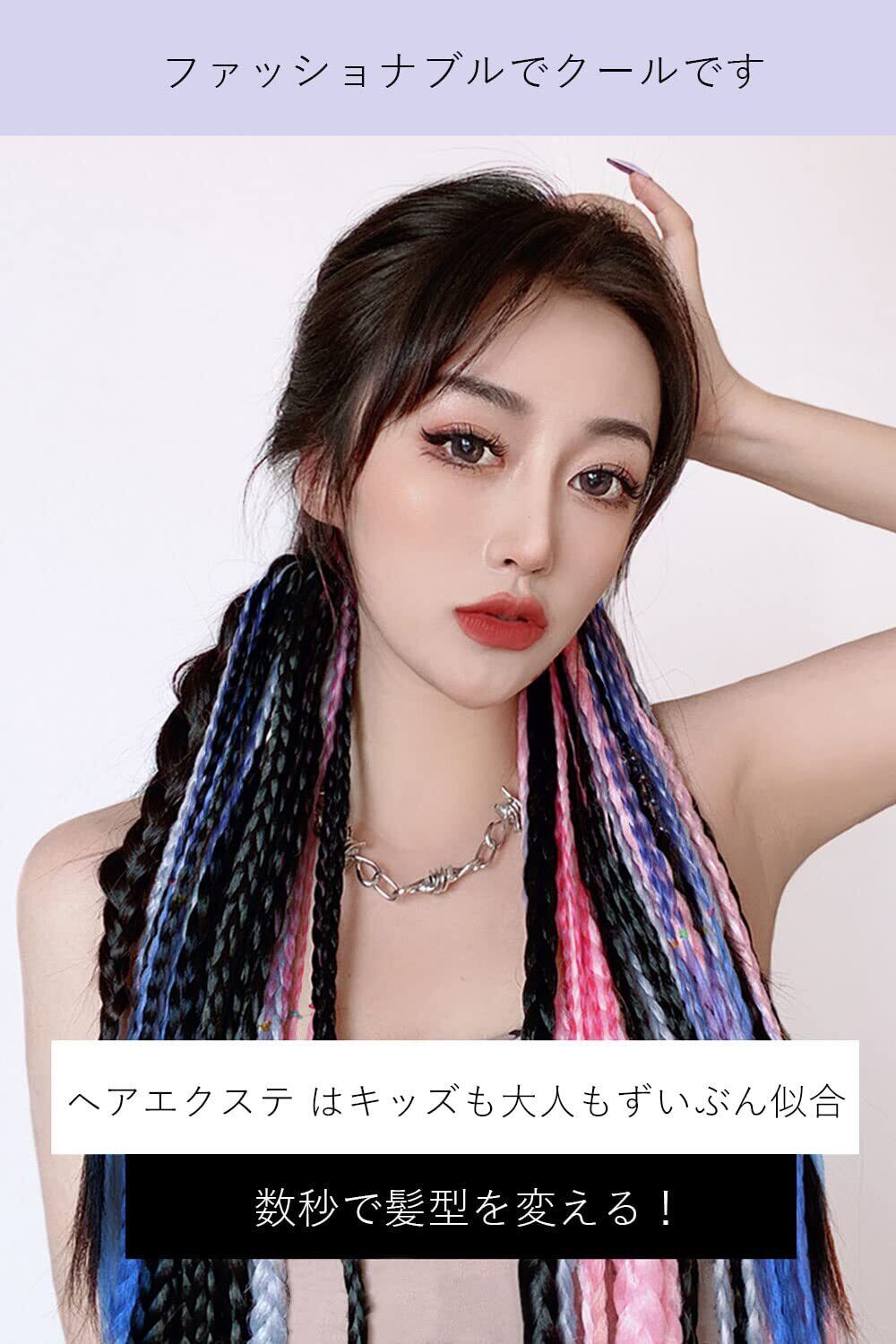 【多様なスタイル】カラフルな編組ウィッグでさまざまなヘアスタイルをDIYできます。各ヘアピースは、髪の長さに合わせてトリミングするのに十分な長さです。ウィッグを自分の髪と一緒に編むと効果的ですよ。