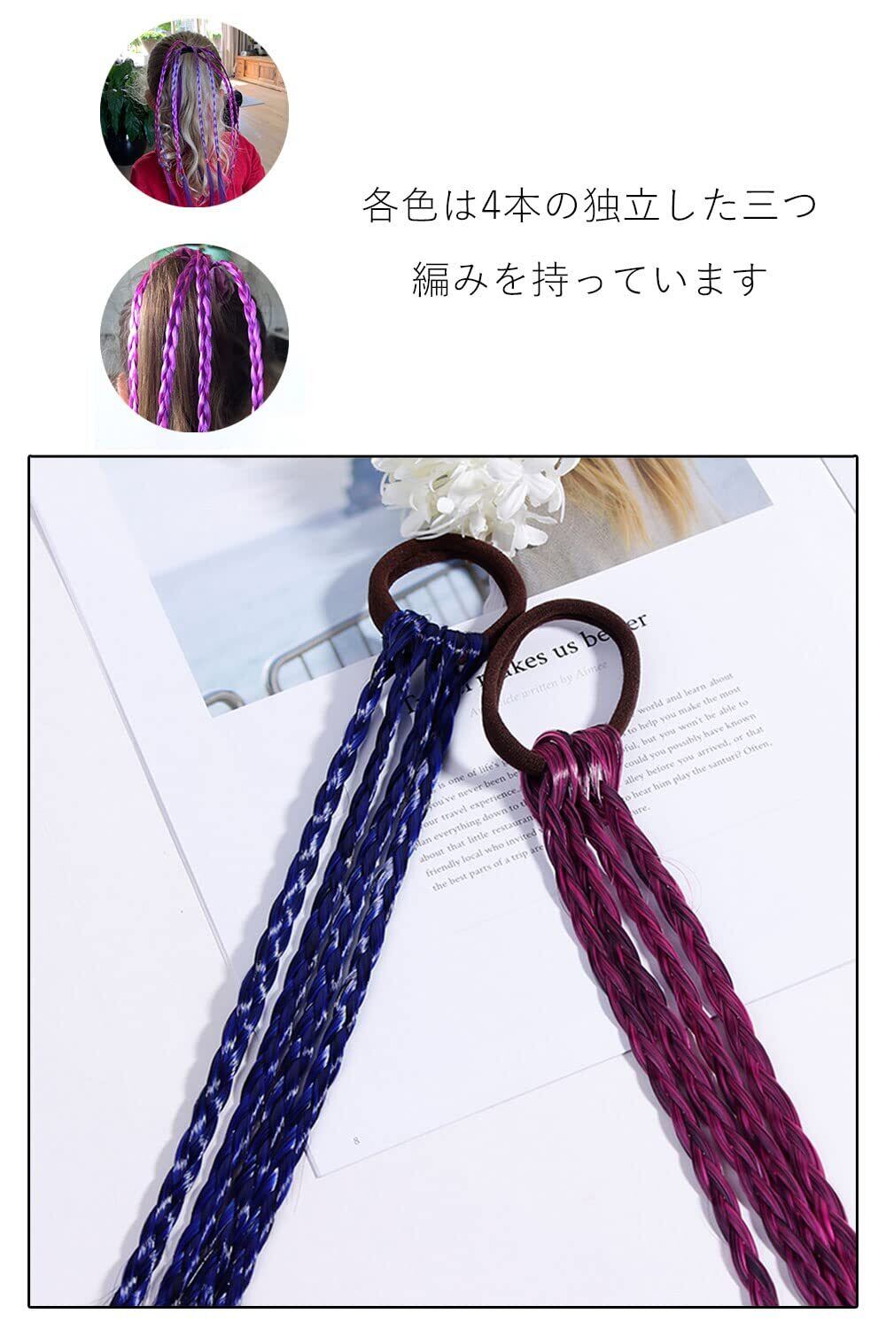 【素材構成】高品質の合成繊維素材でできており、丈夫で調節可能な伸縮性のあるヘアロープが付いているので、お子様の髪を傷つけず、着脱も簡単で。各色は4本の独立した三つ編みを持っています。