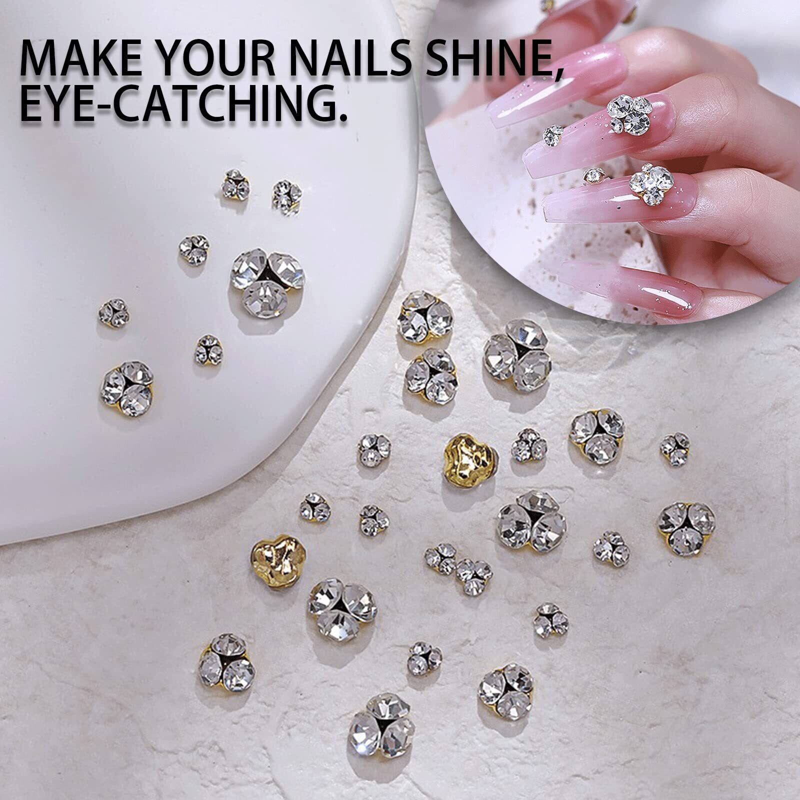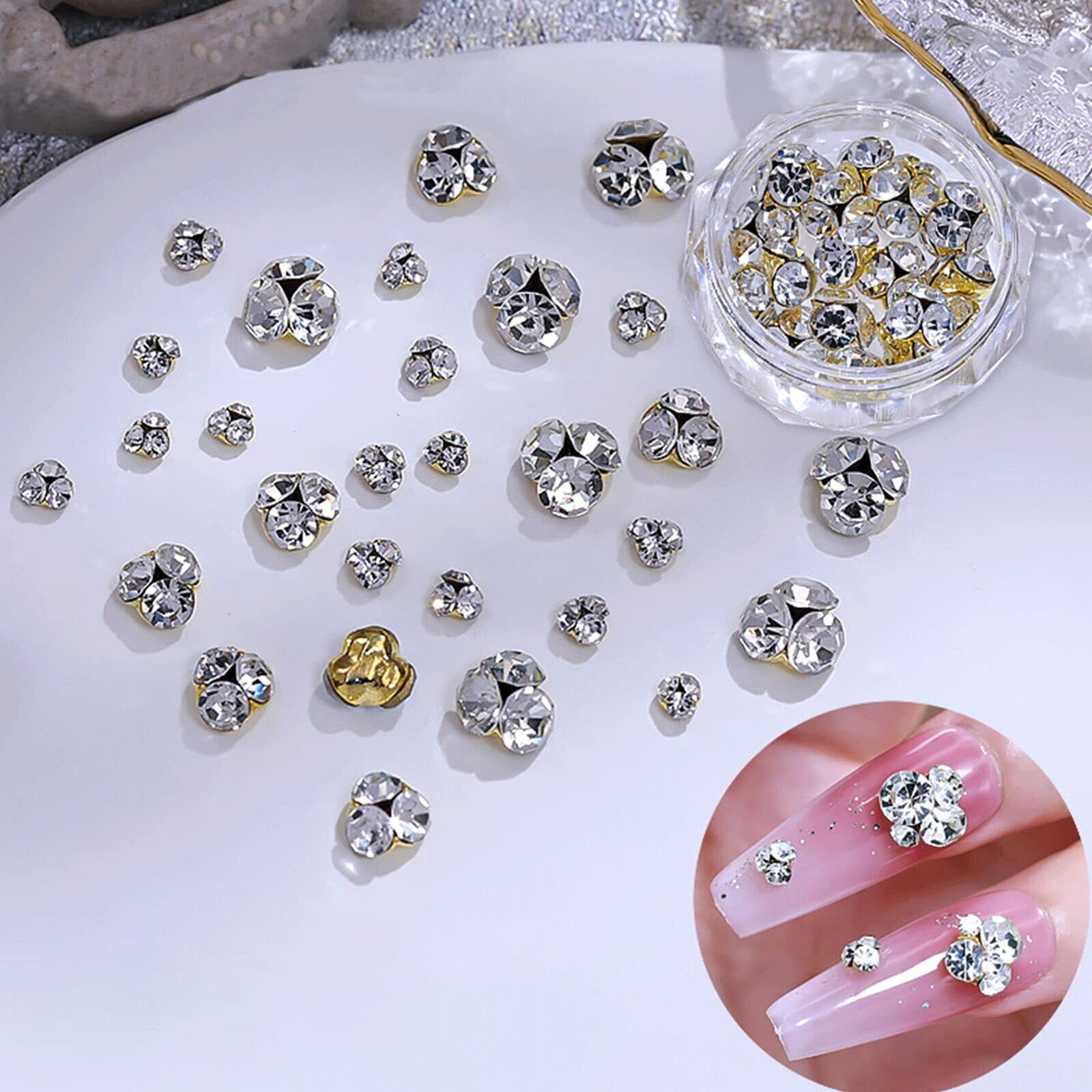 【ネイルパーツ ストーン】キラキラとした魅力的なネイルパーツストーン、3つのストーンを組み合わせたアクセサリーは、ネイルアートを作るのに最適です。