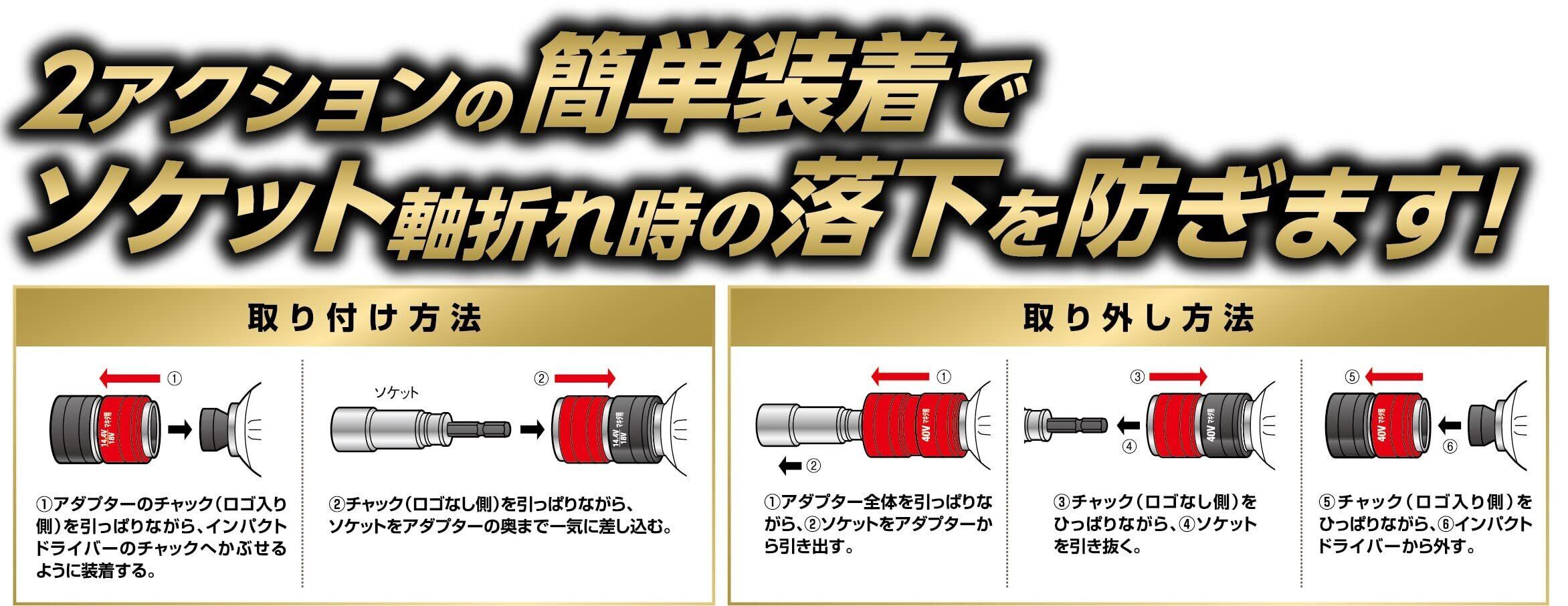 MUSTTOOLのインパクトドライバーソケット(別売り)と同時利用で、軸折れによる落下防止を防ぎます。
