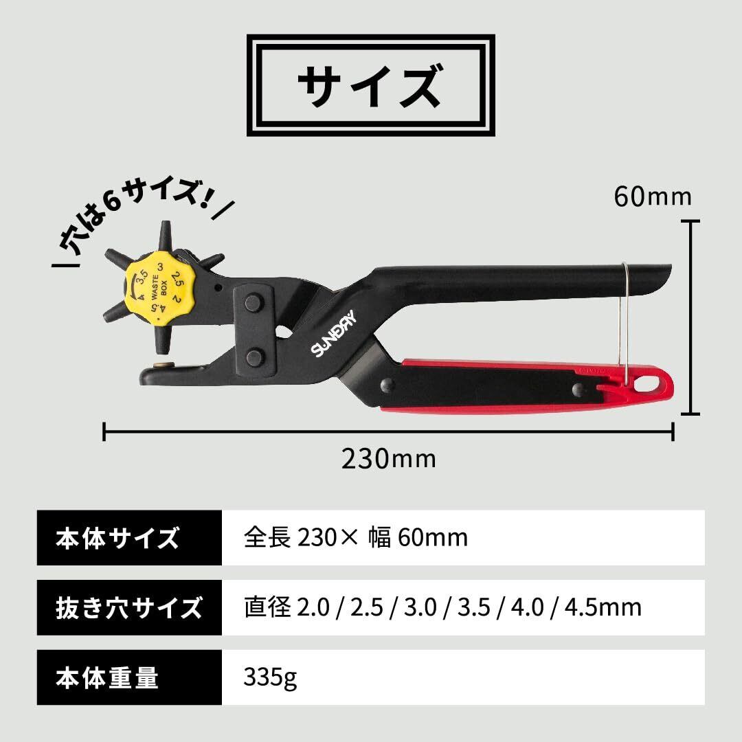 SUNDRY ロータリーレザーパンチ 穴あけ直径2.0-4.5㎜(6段階) RLP-6