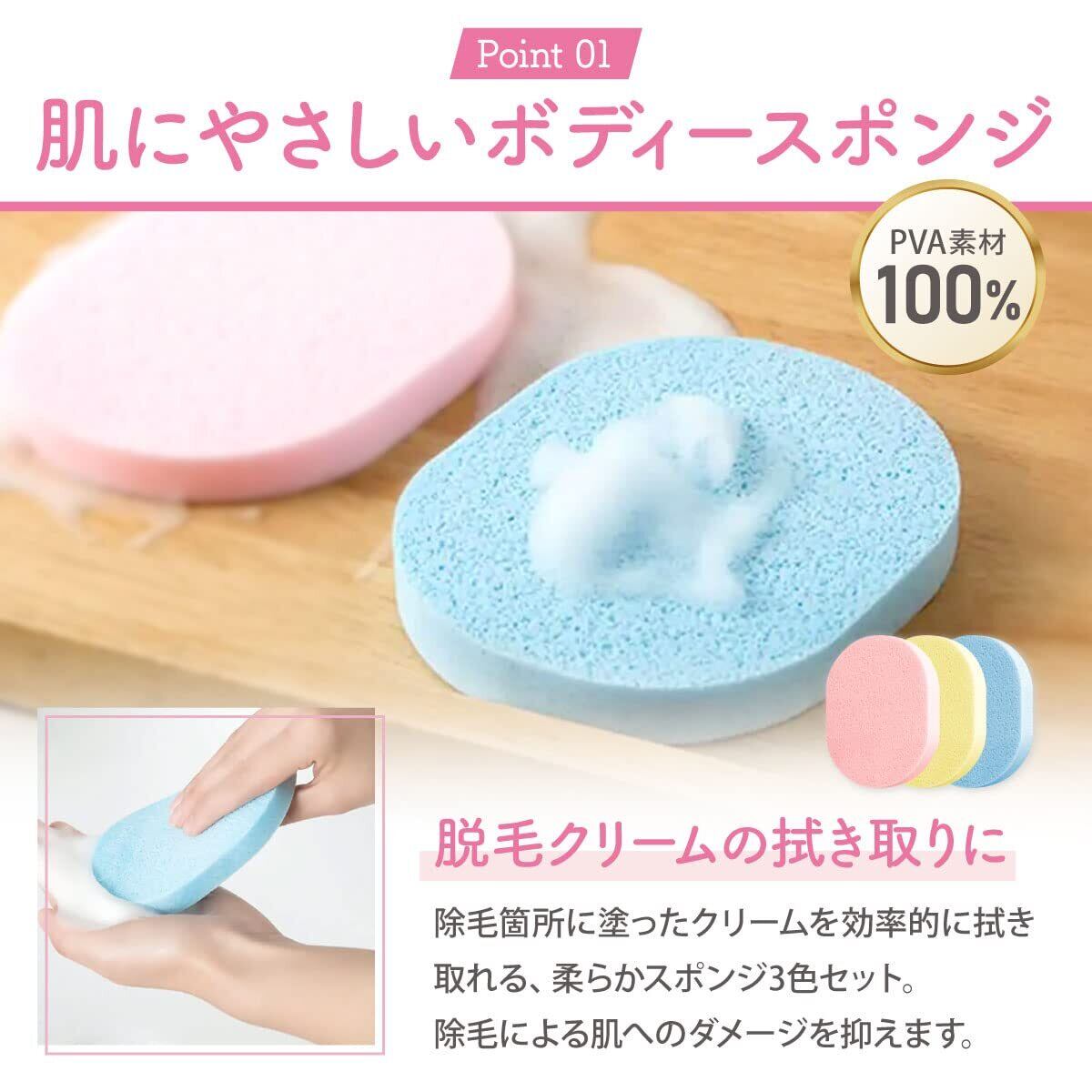 除毛サポートセット 洗って繰り返し使用可能 拭き取り専用ヘラ 2本 スポンジ3個 肌にやさしい 100%PVA