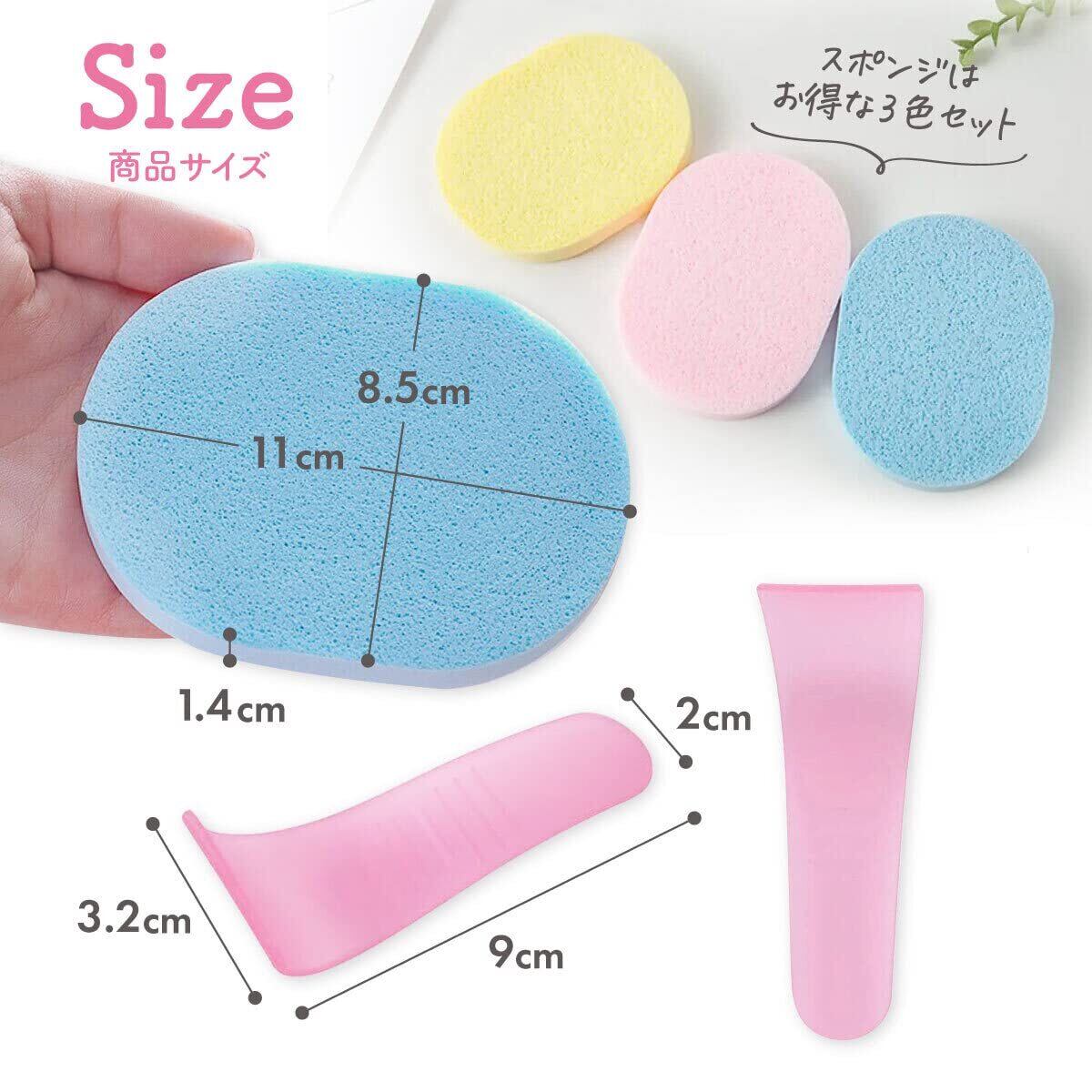 【内容品】スポンジx3個 専用ヘラx1個 スポンジサイズ:11*8.5*1.4cm ヘラサイズ:9*2*3.2cm