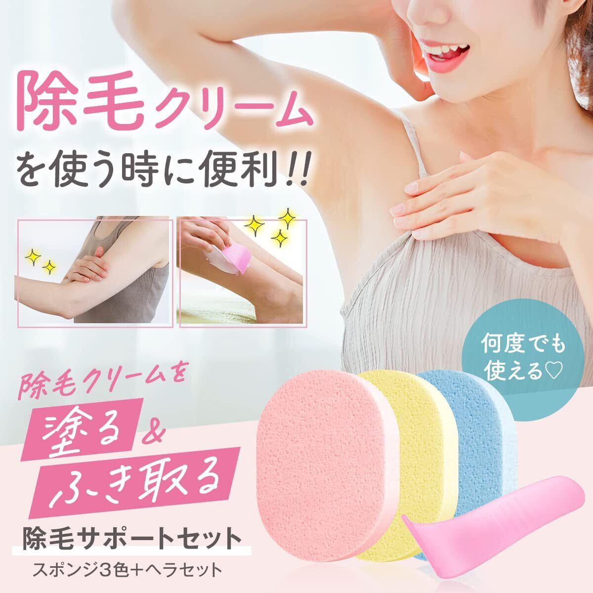 【除毛をもっと楽に】便利なサポートセットです。除毛クリーム専用ヘラ+ボディースポンジ3個のセットとなります。除毛クリームにできるだけ手を触れず、拭き取りを楽にします。