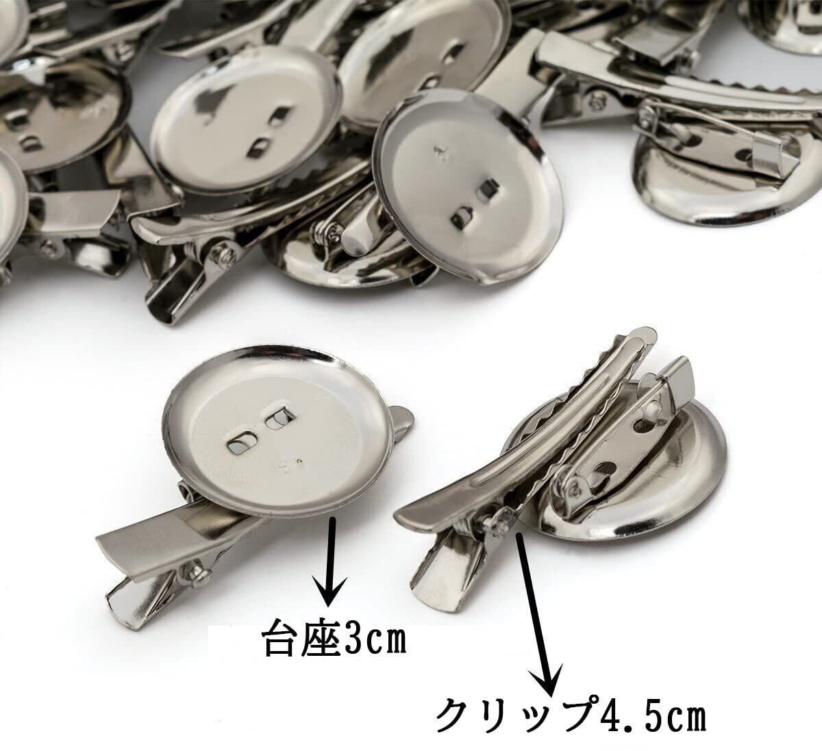 【CRSHIP】クラシップ ブローチ台 ピン・クリップ付きハンドメイド 手芸 パーツ 髪留め 服飾資材/造花 金具 DIY30個セット (台座3cmクリップ4.5cm)