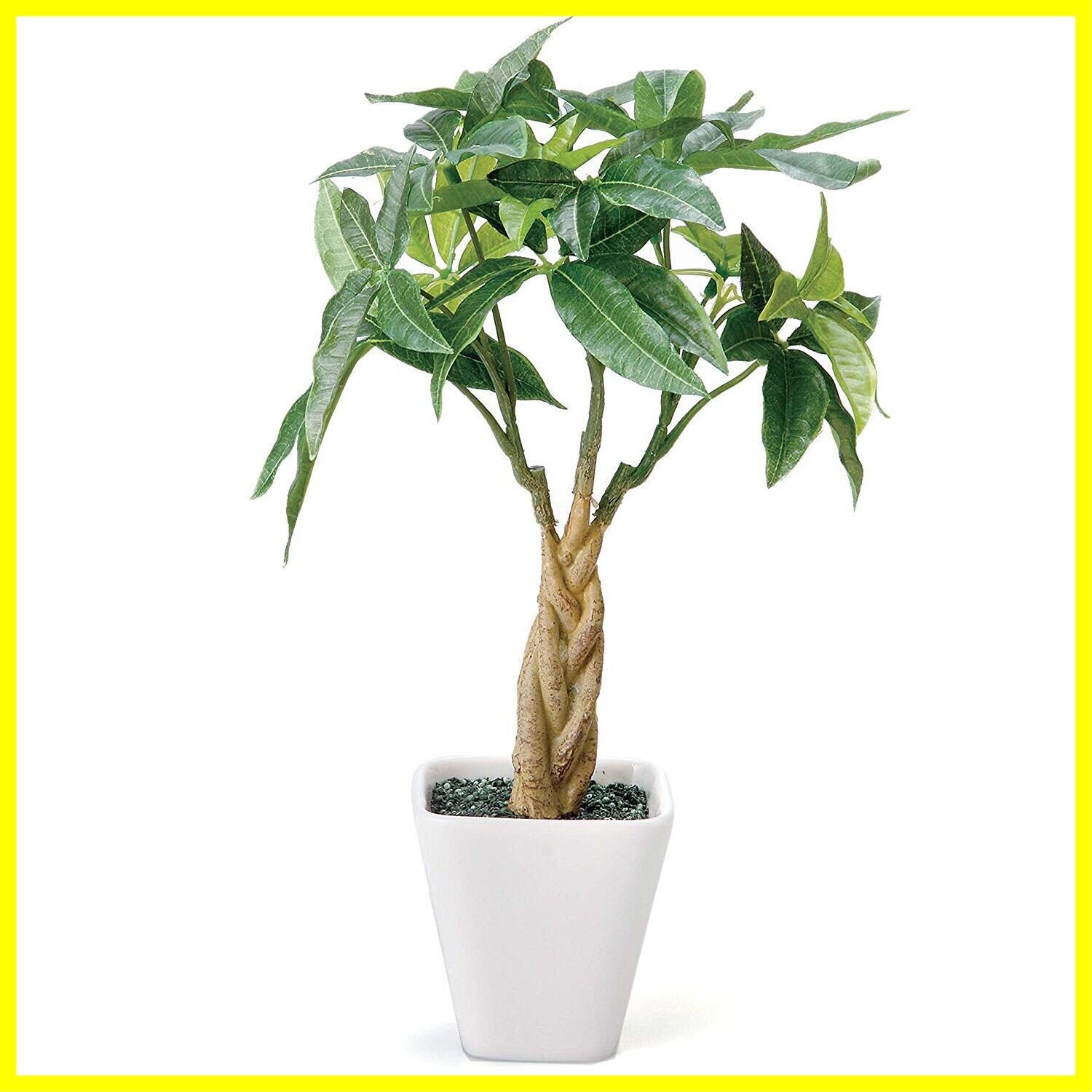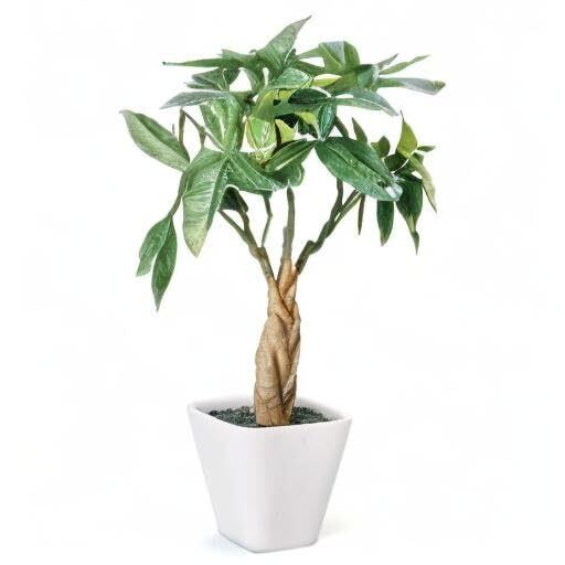 ケーアイジャパン(Kijapan) インテリアグリーン 造花 観葉植物 光触媒 フェイクグリーン KU パキラ (全長 27cm 白 陶器 スクエア ポット)