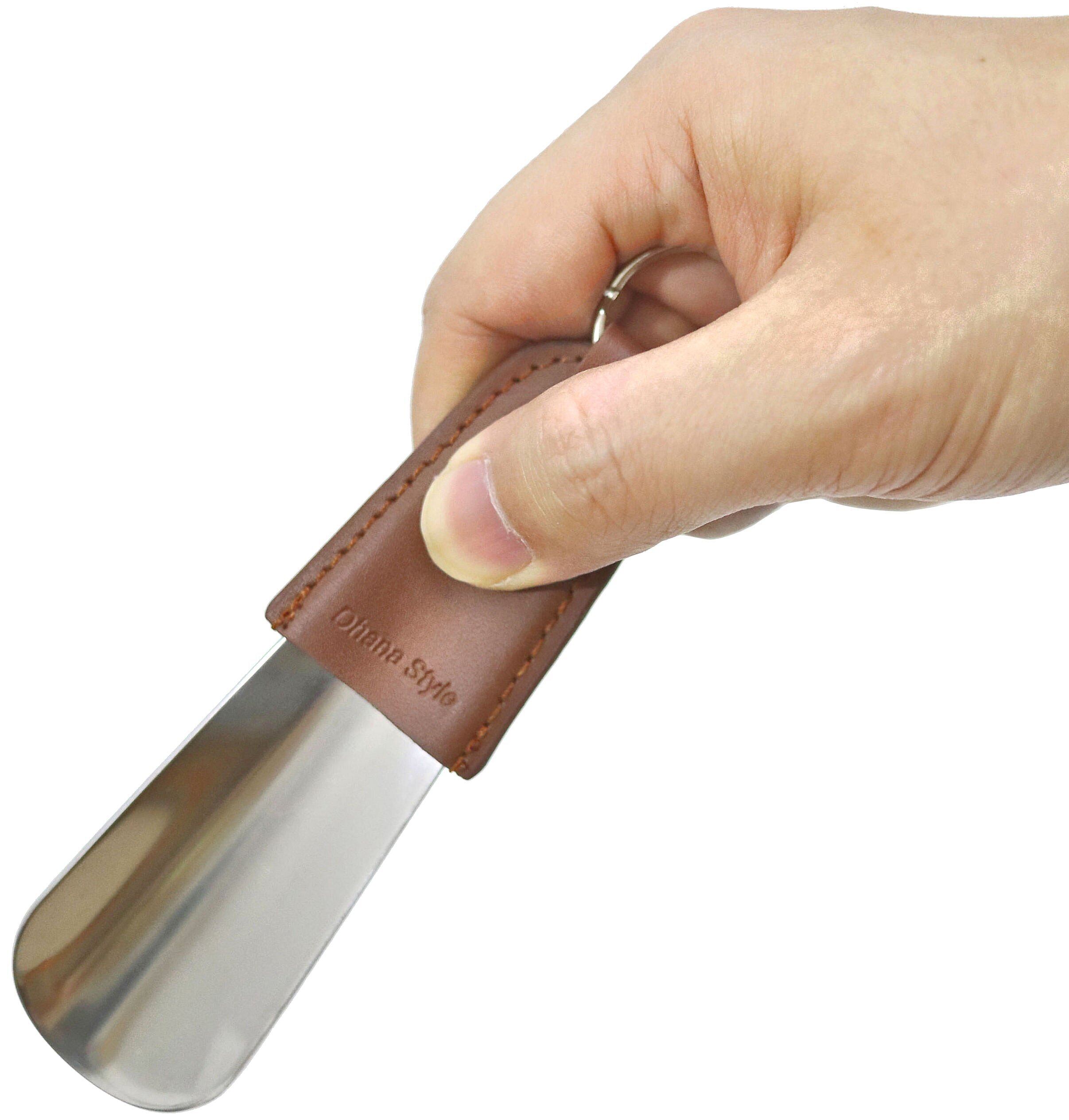 手のひらサイズのコンパクトな靴べらです。 ポケットに入れて持ち運べる軽量・コンパクト タイプです。 キーホルダーとしてご使用いただけます。