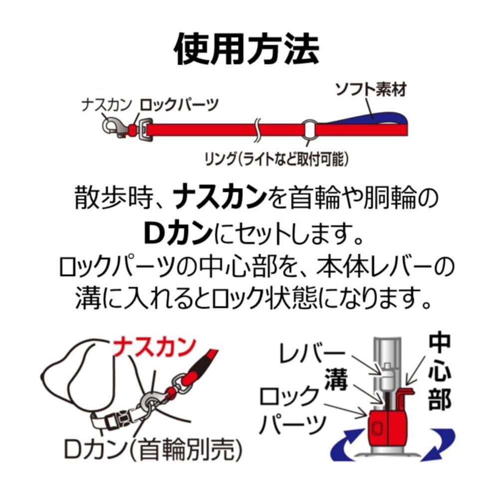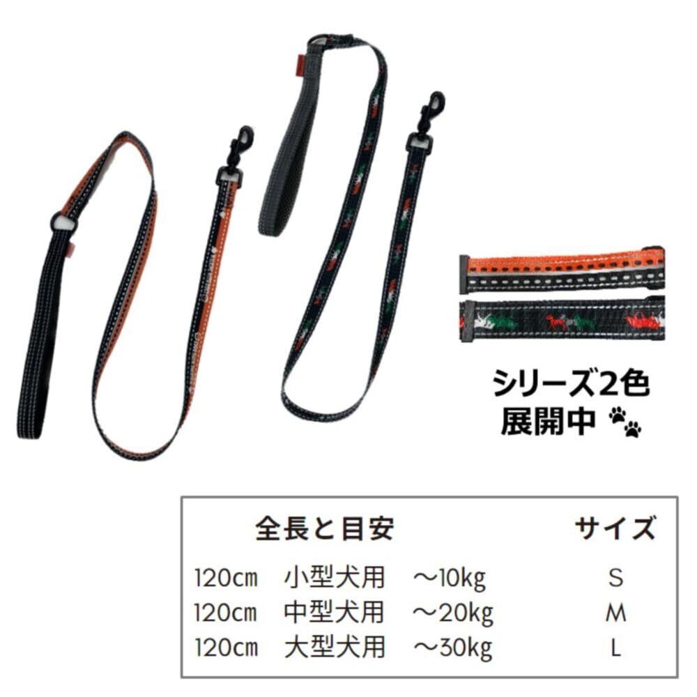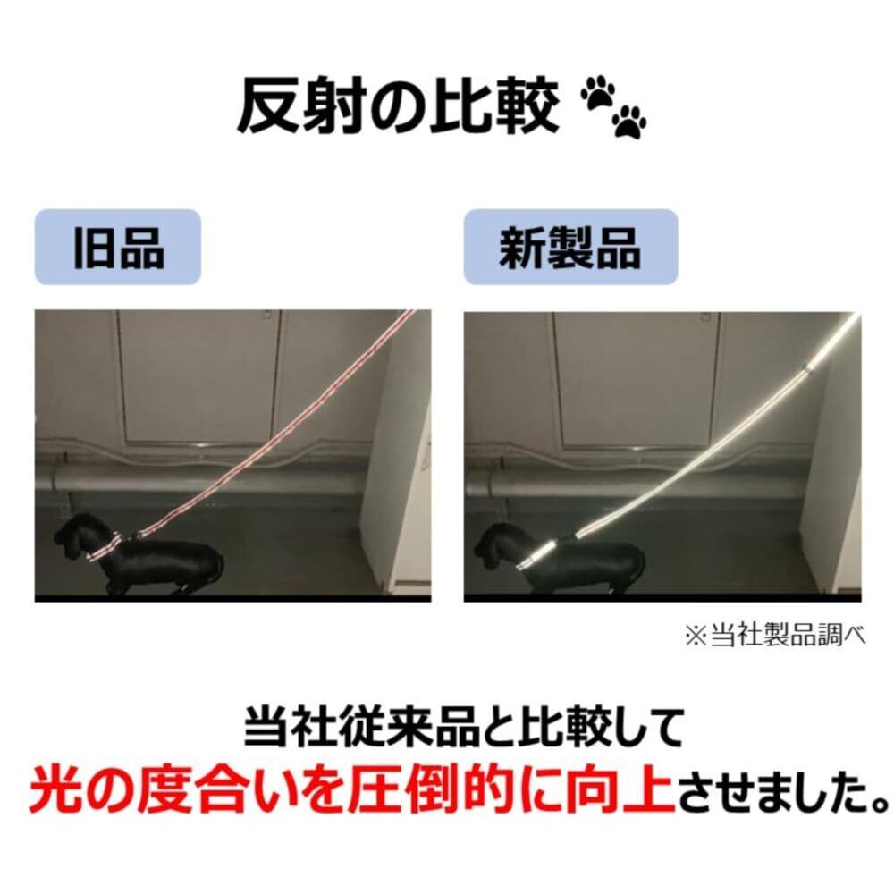 ・反射材入りの平タイプの散歩用の引紐(リード)です。 ・太い反射糸採用により夜のお散歩の安全性に寄与 ・持ち手のクッションでオーナーの負担を軽減 ・リングがついているのでライトなどを取り付け可能