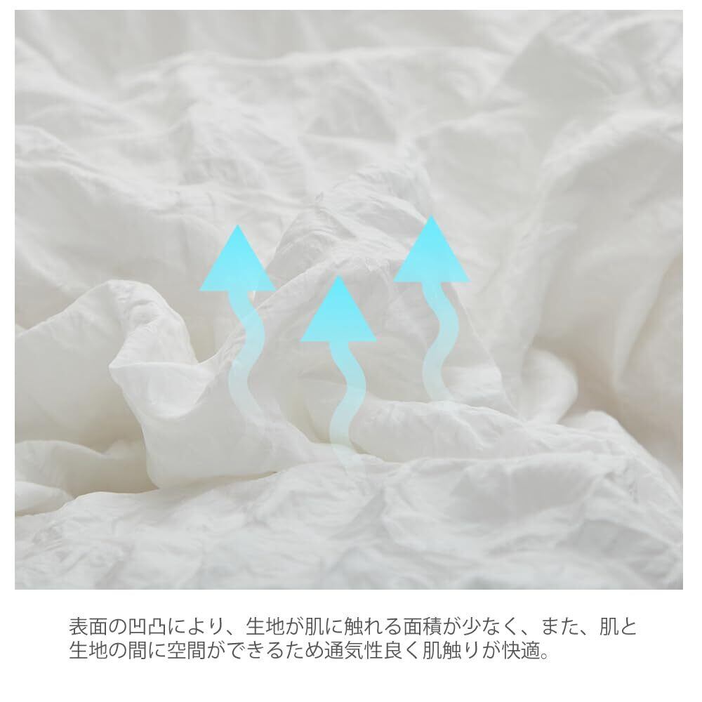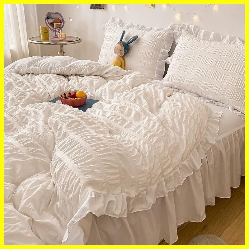 布団カバー 3点セット 4点セット フリル付き布団カバー 寝具カバー 洋式・和式兼用 ベッドカバー 掛け布団カバー ボックスシーツ 枕カバー シーツカバー 肌に優しい ピーチスキン加工 北欧風 四季通用 (シアサッカーホワイト, 3点セット*シングル)