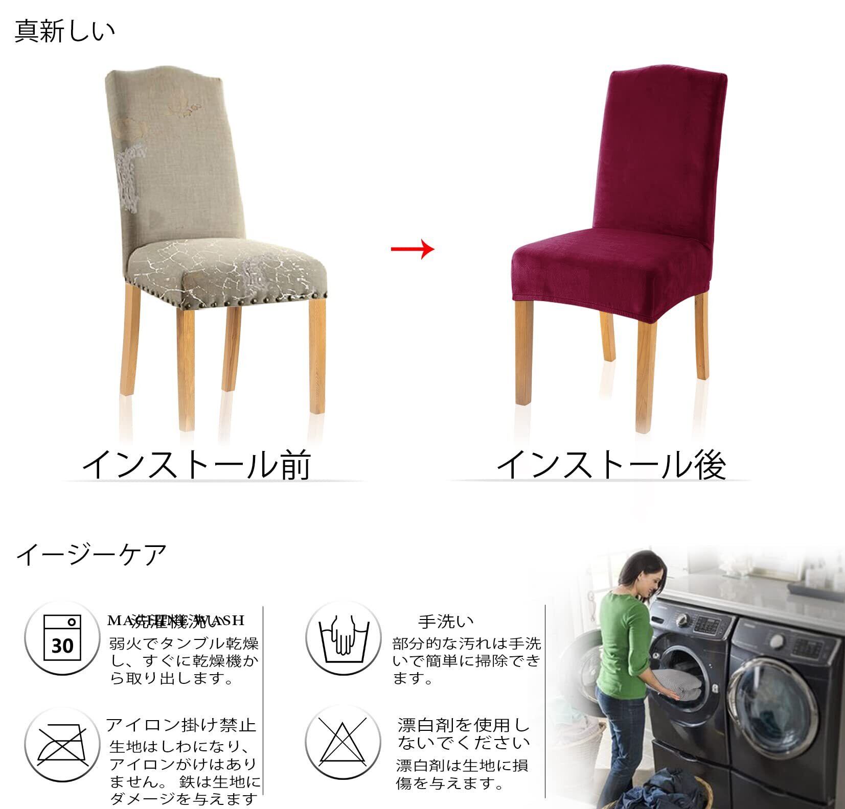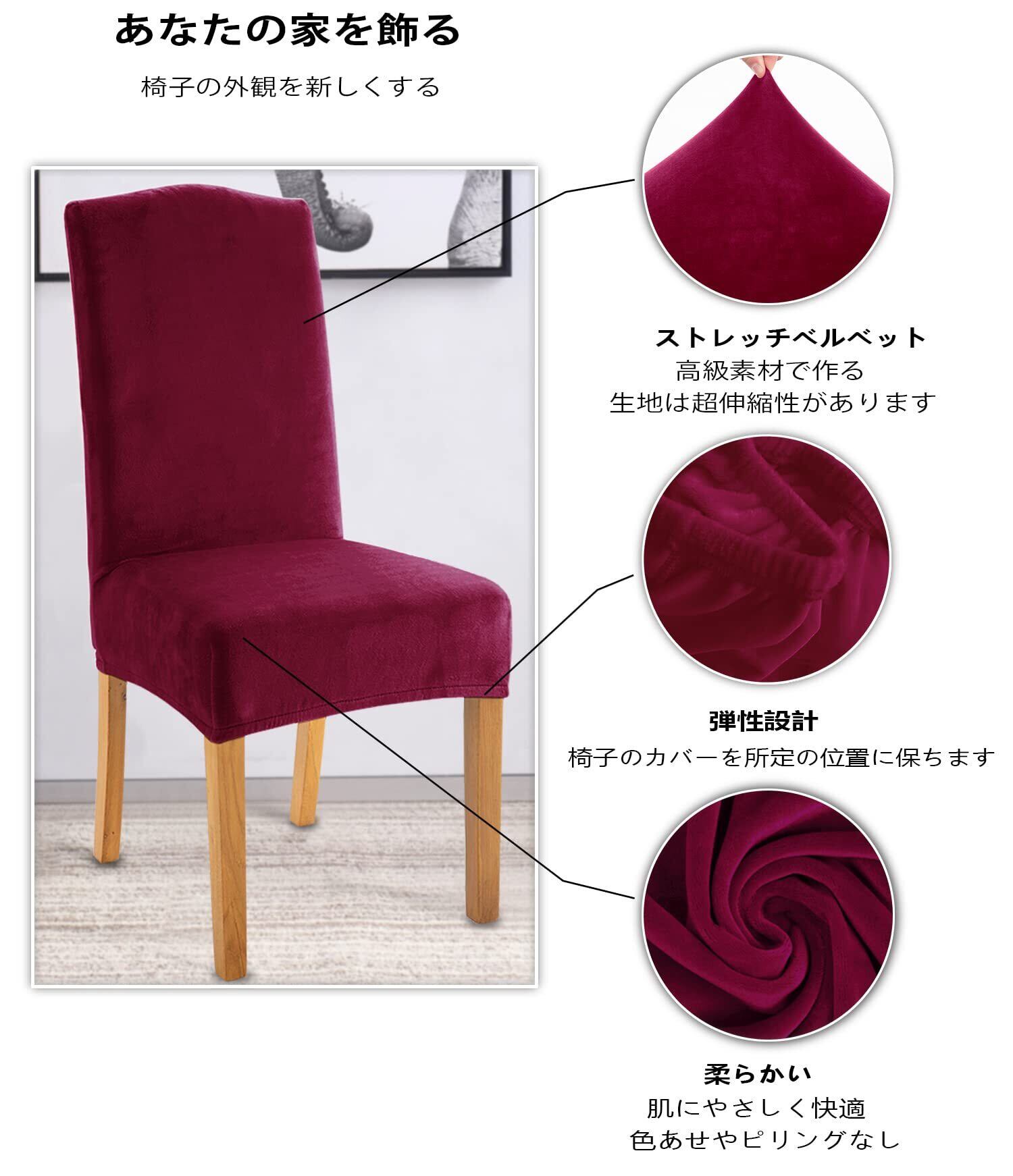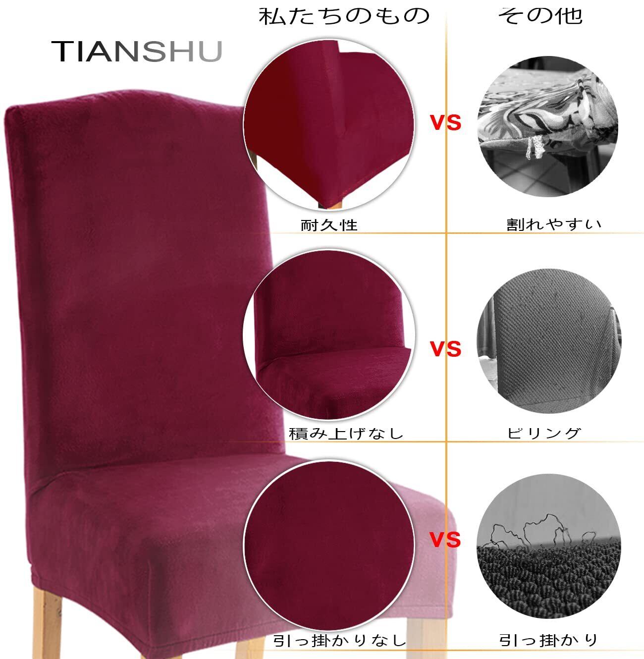 TIANSHU フランネル 椅子カバー, チェアカバー 伸縮素材 ストレッチ ふわふわ 家庭・ホテル用 ウェディング・結婚式・パーティーなど対応 取り外し可能 洗える (4枚,ワインレッド)