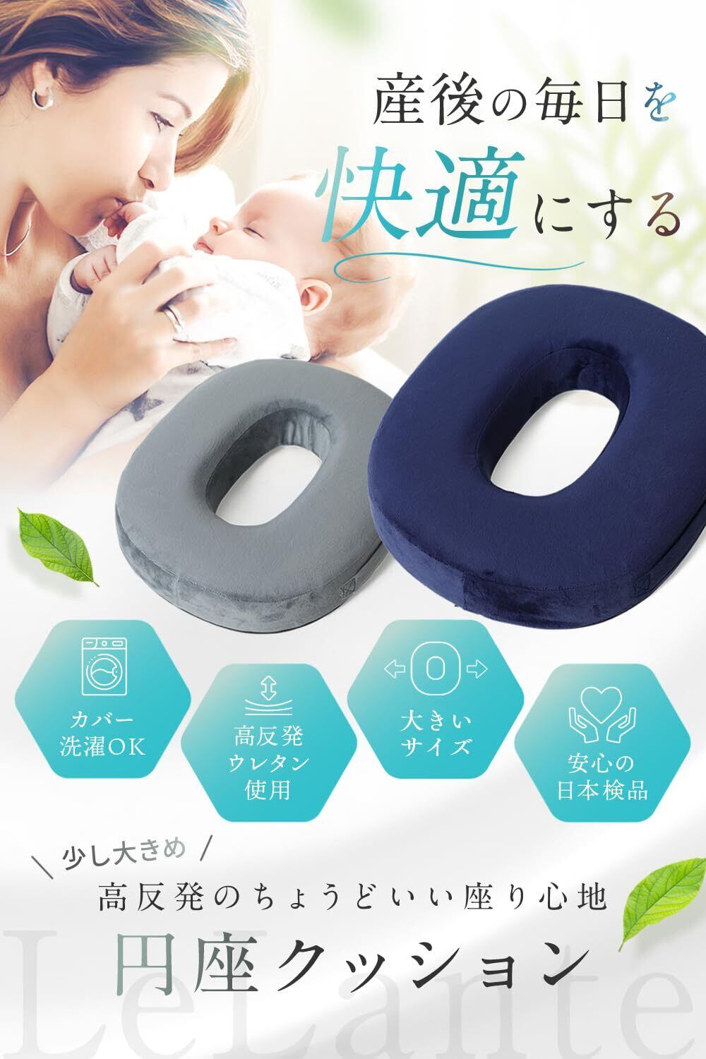 【Lelanteのこだわり】様々な ドーナツ型クッション や 産後クッション が出回っていますが、当社の 円座クッション は、ほどよいフィット感と耐久性にこだわっています!