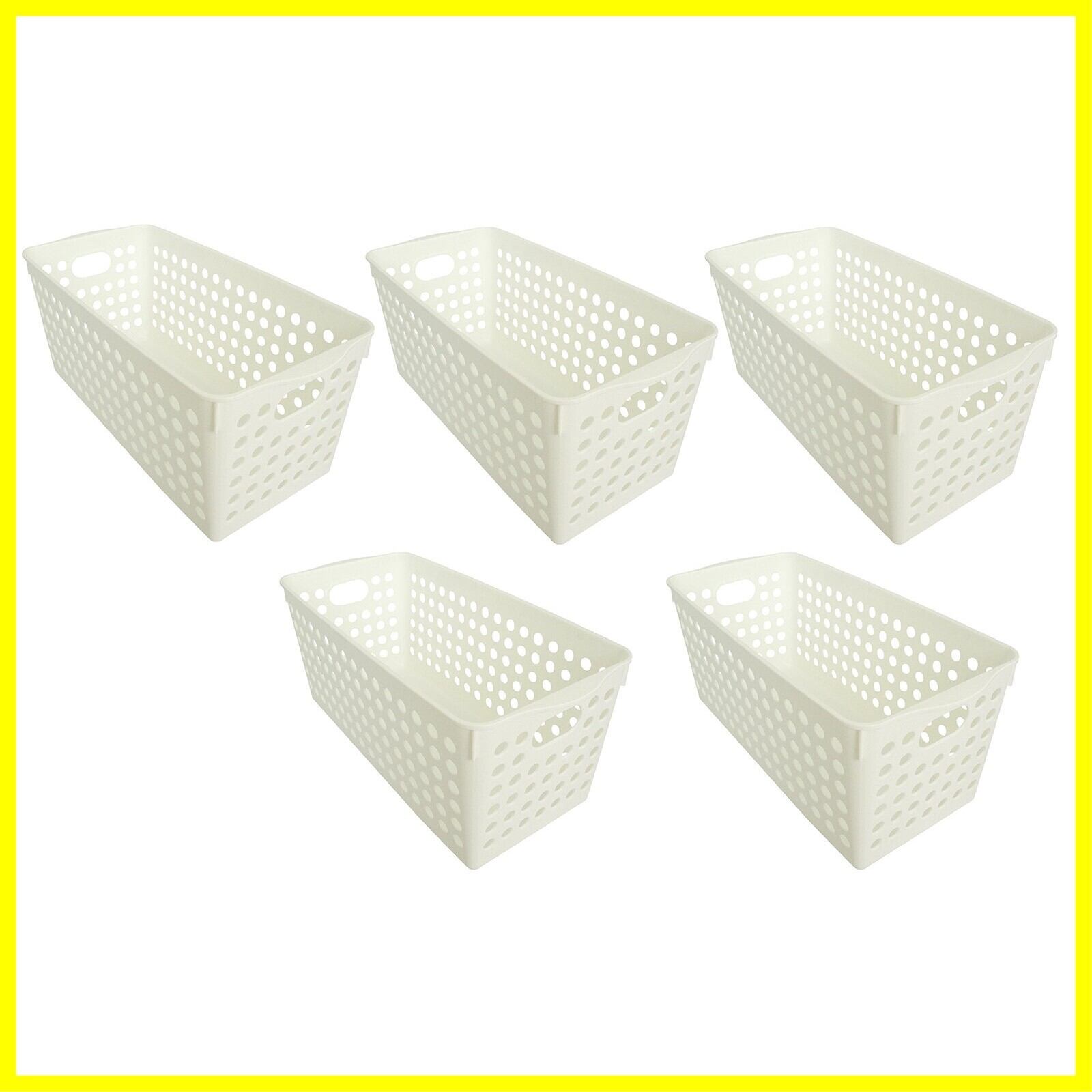 イノマタ化学 収納バスケット ストックバスケット スリム ホワイト 5個セット