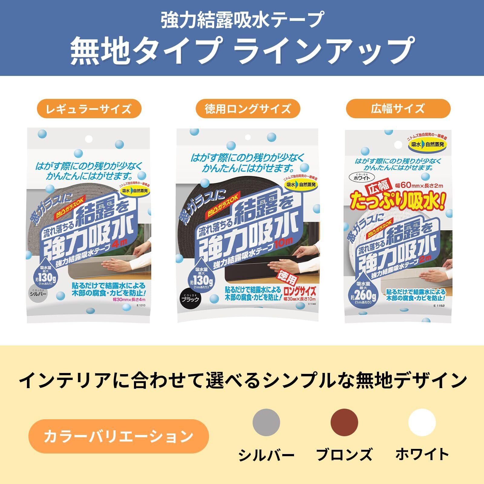 ニトムズ 強力 結露 吸水テープ 広幅 ホワイト カビ防止 窓ガラス 貼るだけ リビング 寝室 幅6cm×長さ2m 1巻入 E1152