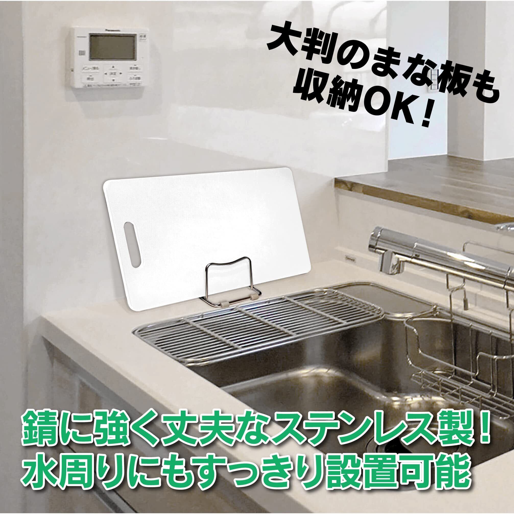 【まな板を立てて省スペース収納】大きなまな板もすっきり収納!シンプルで使いやすい滑り止め付きまな板スタンドです。