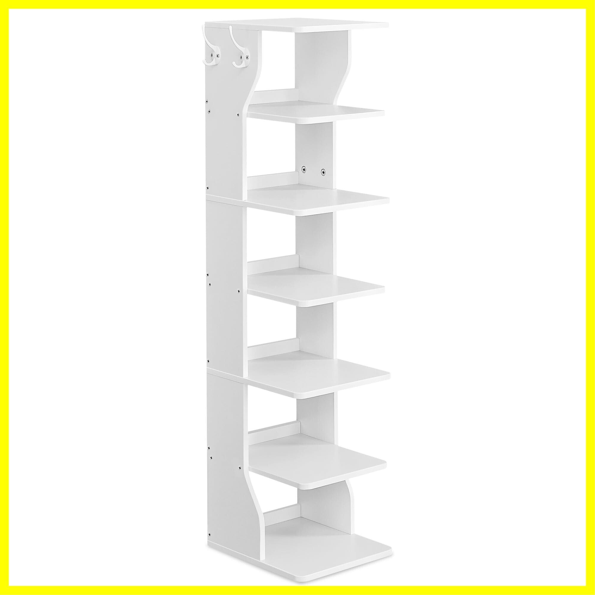 VASAGLE シューズラック 7段 スリム 省スペース おしゃれ フック付き 木製 コーナーシューズラック 頑丈 シンプル 靴入れ 靴 収納 シューラック 下駄箱 シューズ スニーカー ホワイト LBS200T14V1
