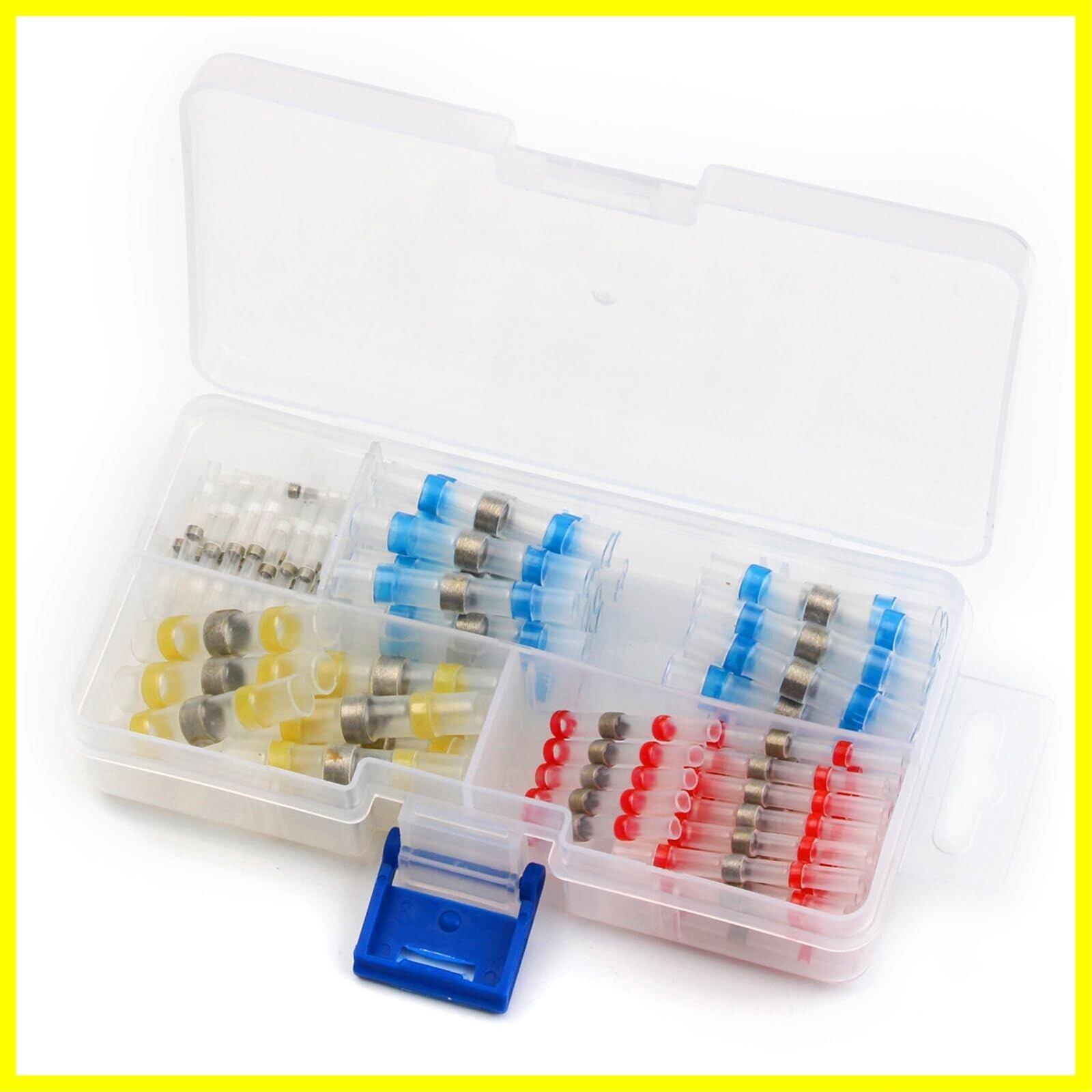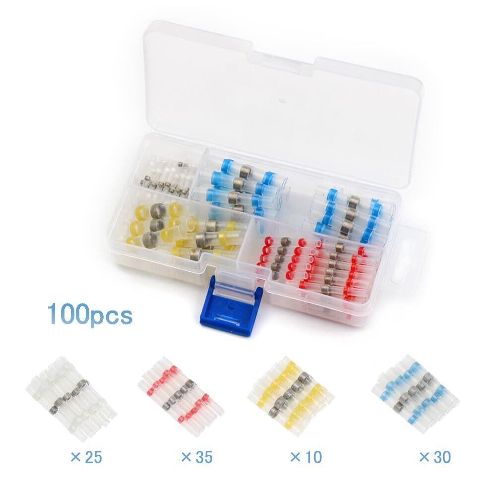 BTtime 熱収縮チューブ 100個入 4サイズ 透明末端コネクタ 圧着端子 半田スリーブ 防水ハンダスリーブ 電気絶縁 電子 船舶 工業用(白/赤/青/黄)