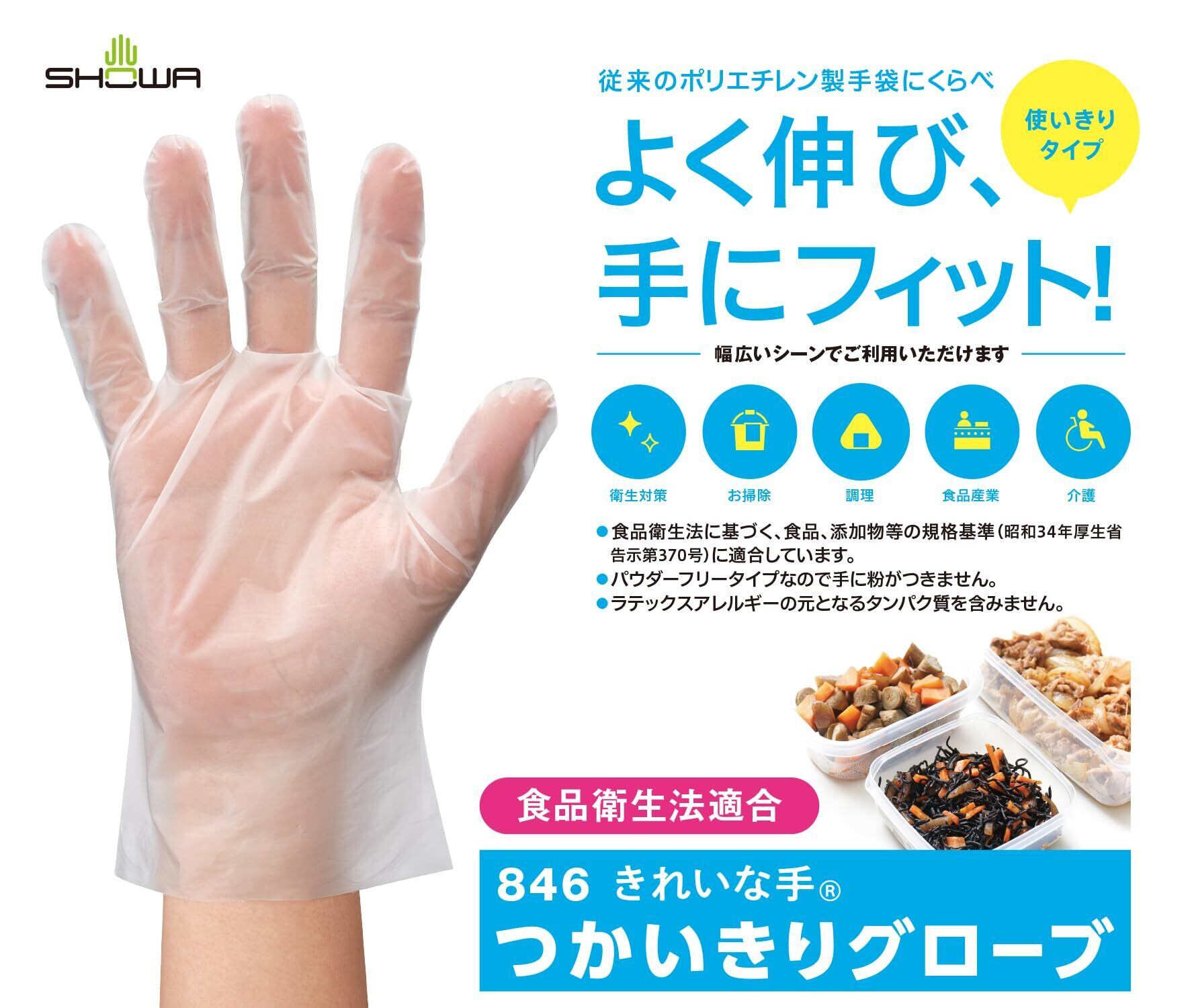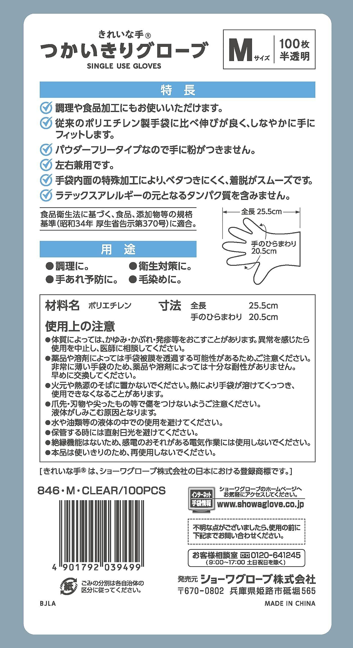 ショーワグローブ 【食品衛生法適合・使い捨て手袋】 No.846 きれいな手 つかいきりグローブ 100枚入 半透明 Mサイズ 1函