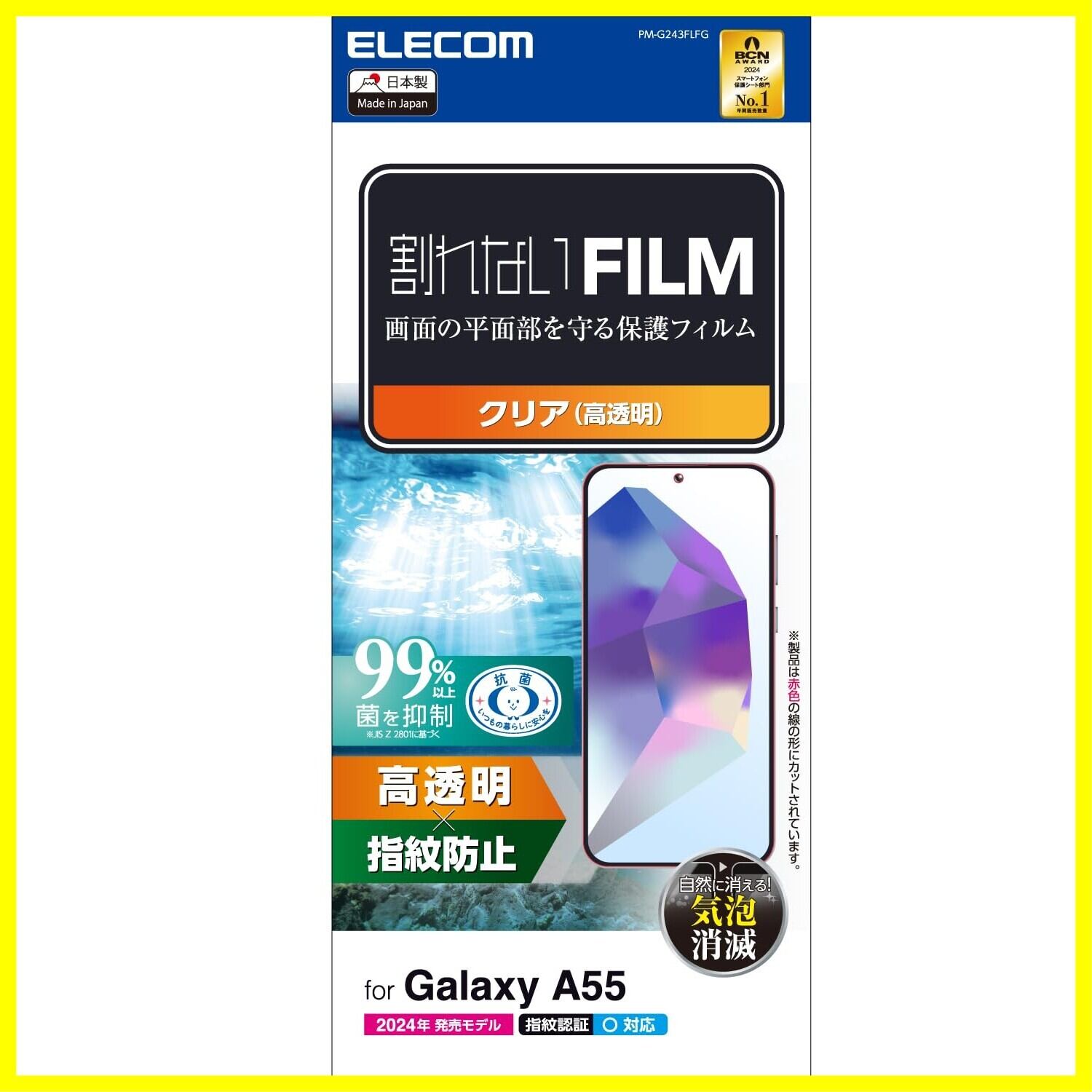 エレコム Galaxy A55 5G SC-53E フィルム 光沢 グレア 指紋認証 指紋防止 ハードコート 気泡ゼロ PM-G243FLFG