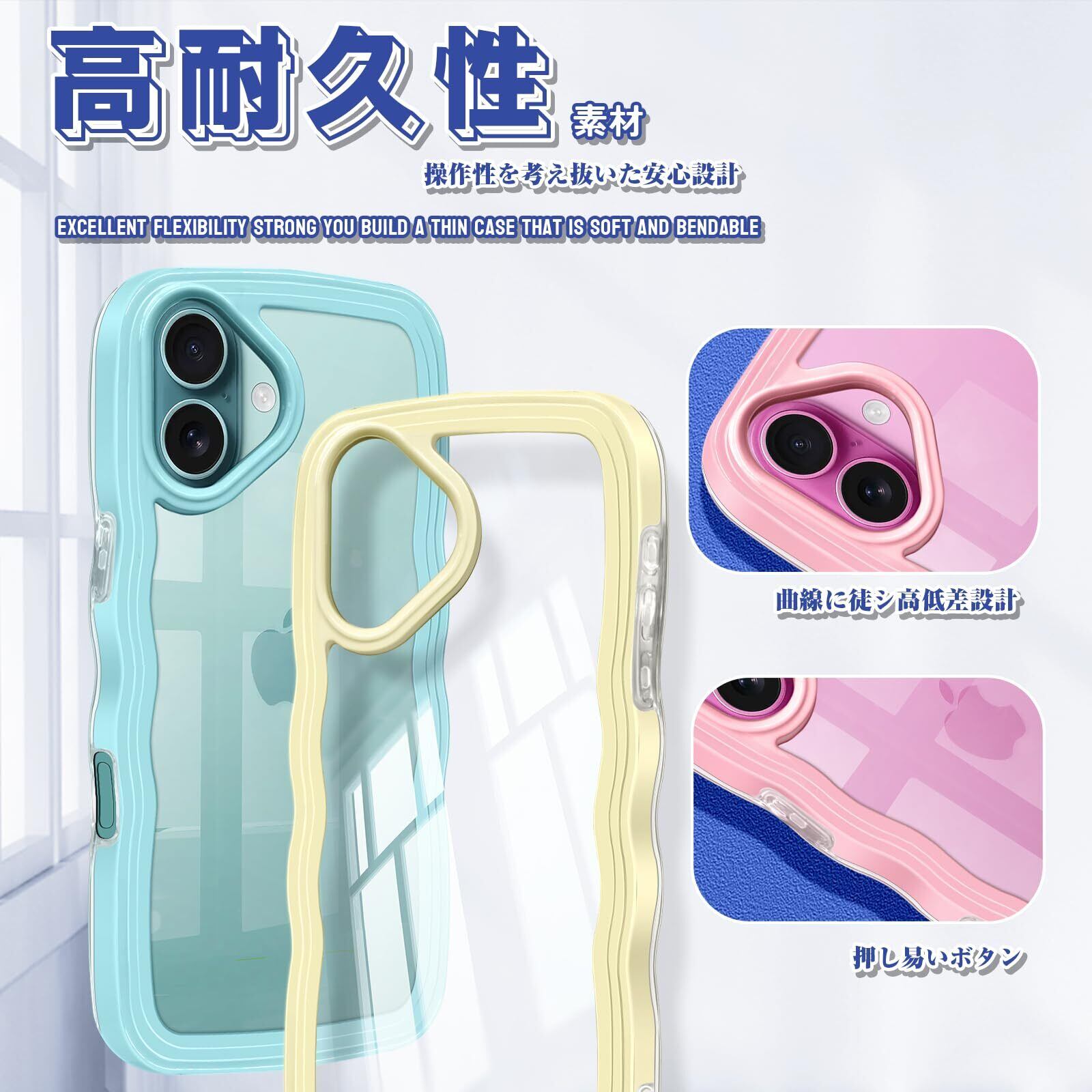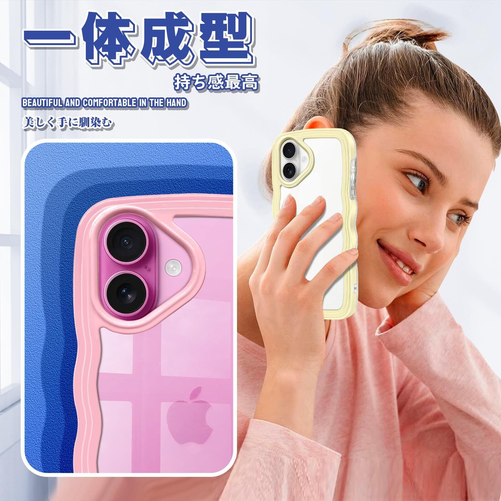 iPhone 16 plus 用 ケース クリア おしゃれ 韓国 可愛い 透明 スマホケース 耐衝撃 軽量 ストラップホール付き ワイヤレス充電 iphone16 plus 用 カバー 6.7インチ アイフォン16plus TPUカバー イエロー