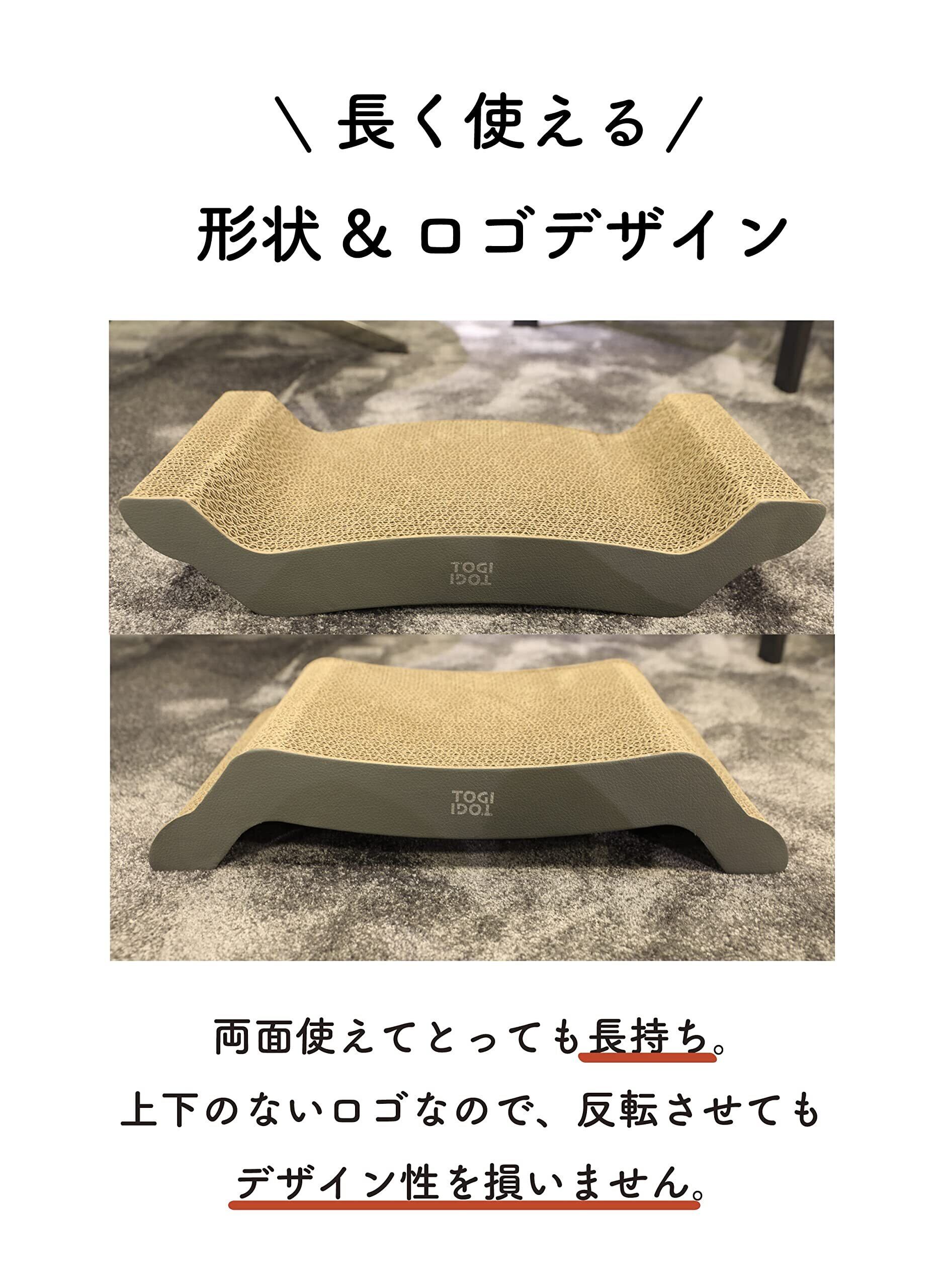 インテリアにも妥協したくない方のためのネコ用爪とぎ「TOGITOGI」段ボールの接着にはとうもろこしを主原料とした天然素材の糊を使用。自然素材なので、手や肉球をなめても安心です。