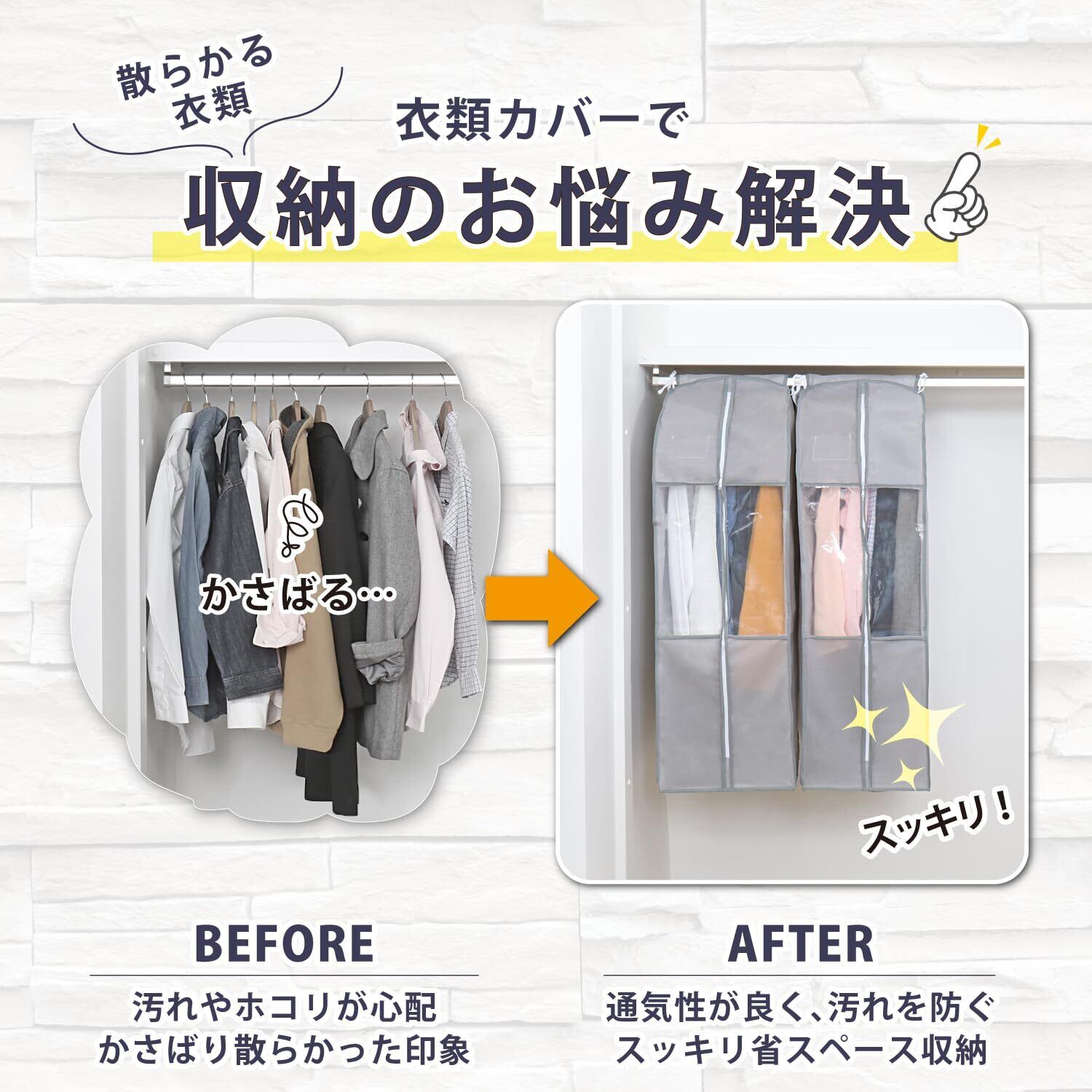 【衣類をまとめて保管】:オフシーズンの洋服をまとめてホコリなどの汚れから守ります。5~7枚までの衣類の保管が可能。
