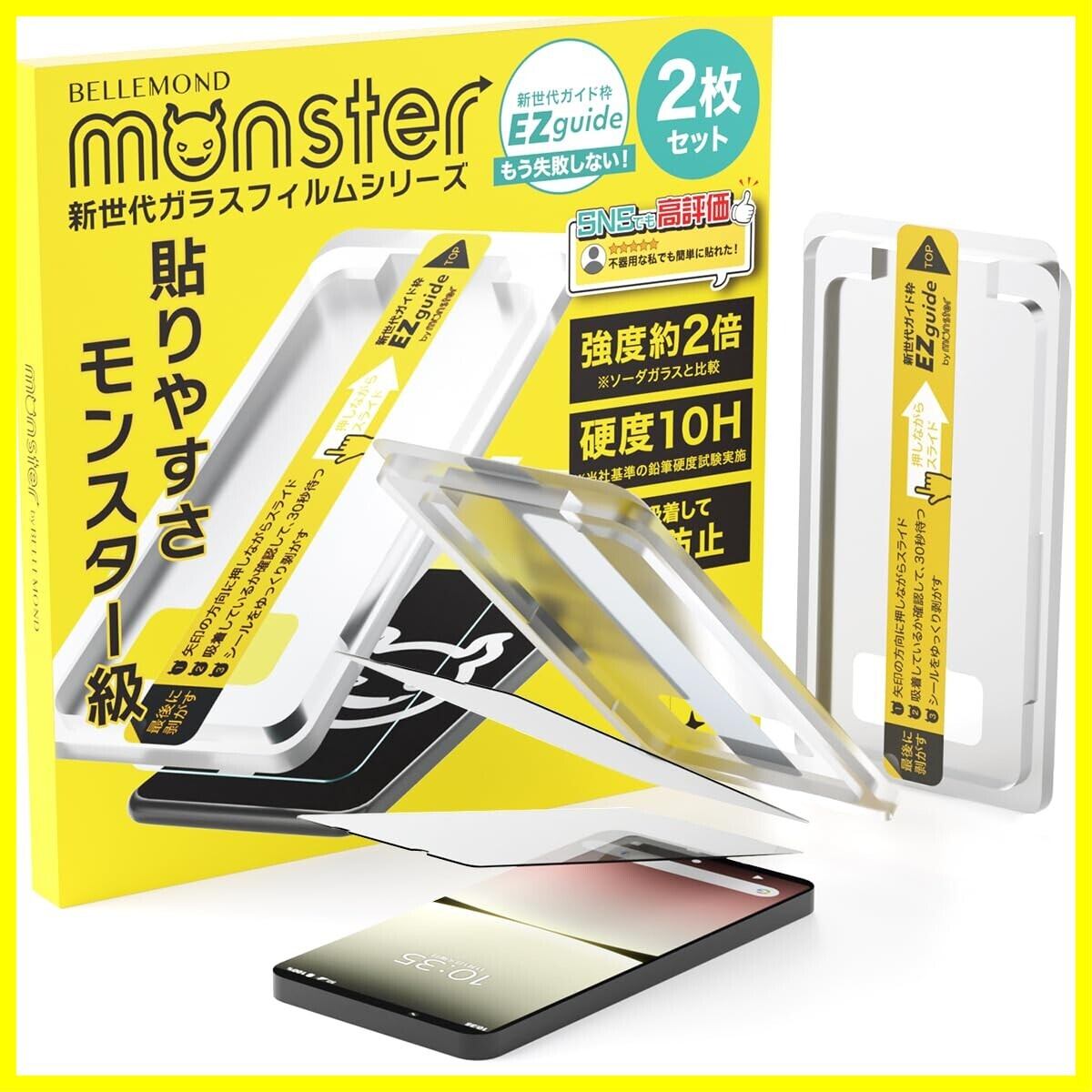 モンスターフィルム Xperia 5 IV 用 | 強化 ガラスフィルム 透明 クリア 保護 フィルム 硬度10H | エクスペリア ファイブ マーク フォー SO-54C SOG09 XQ-CQ44 対応 ベルモンド ガイド枠付き 2枚 セット B0783