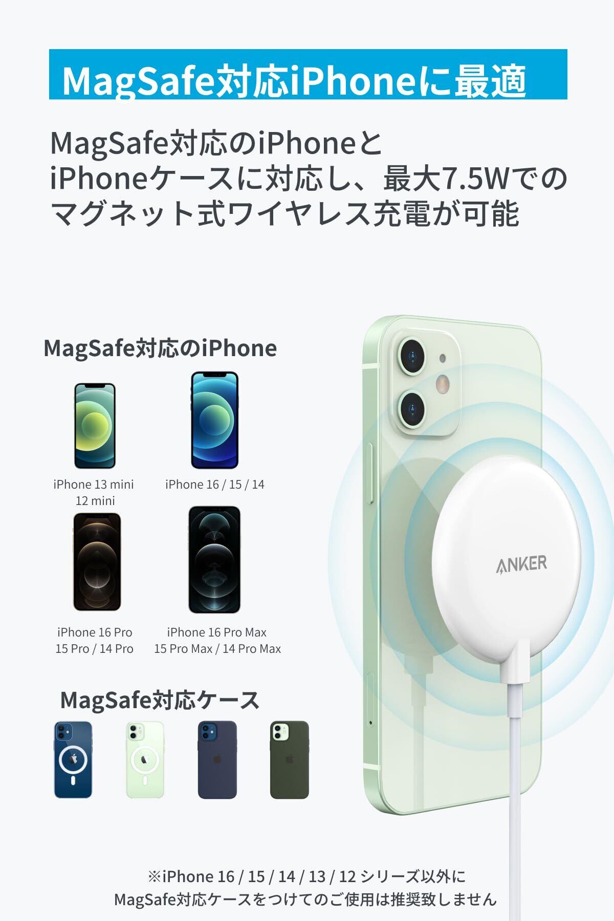 Anker PowerWave Magnetic Pad Lite(マグネット式ワイヤレス充電器) iPhone 15 / 14シリーズ ホワイト