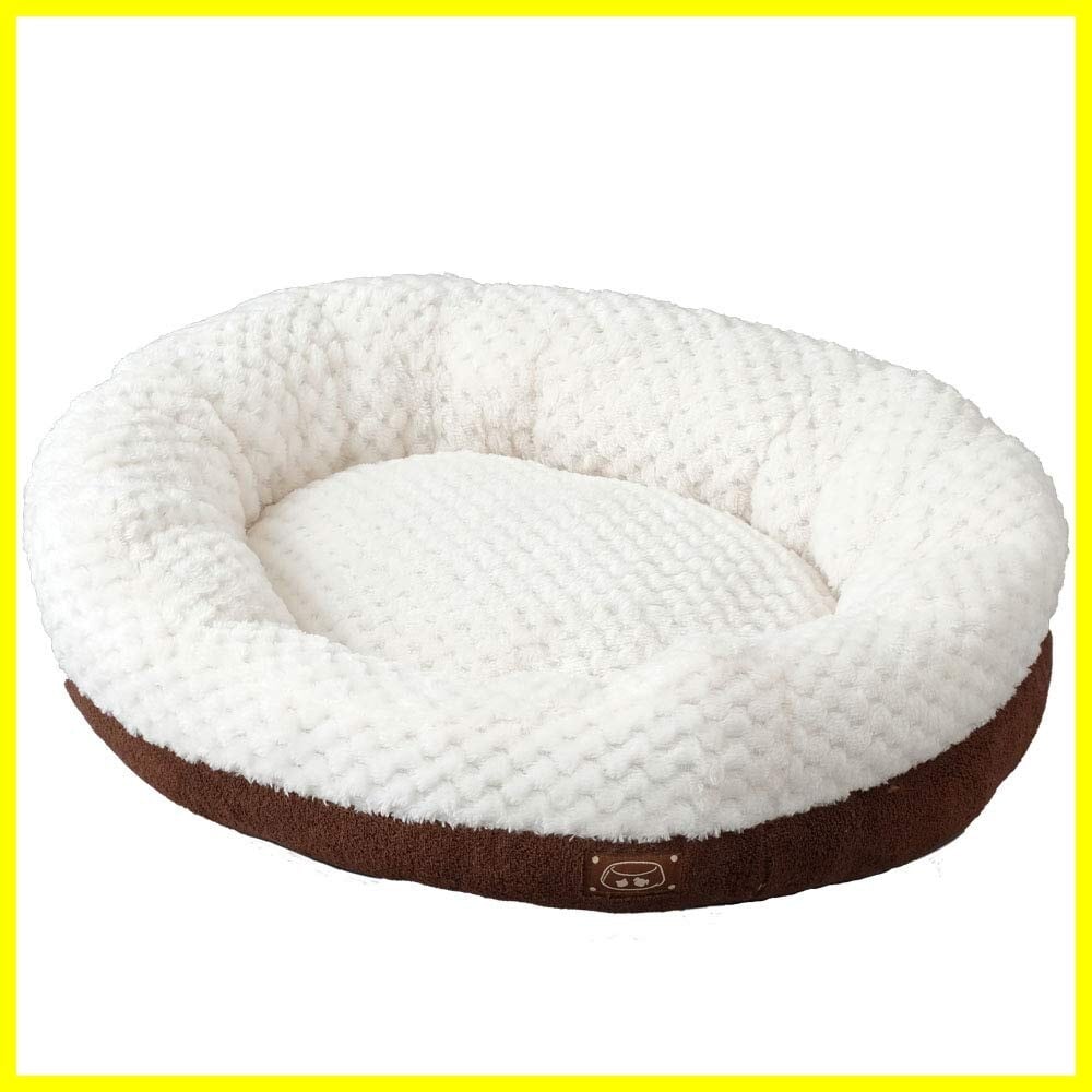 【商品説明】:ふんわりクッションが気持ちいい、あったか素材の秋冬仕様のペット用ベッドです。 シンプルなデザインがお部屋にマッチします。 おうちの愛犬、愛猫も快適な寝心地にうっとりすること間違いなし。 丸まりやすいオーバル型の寝心地の良いベッド。