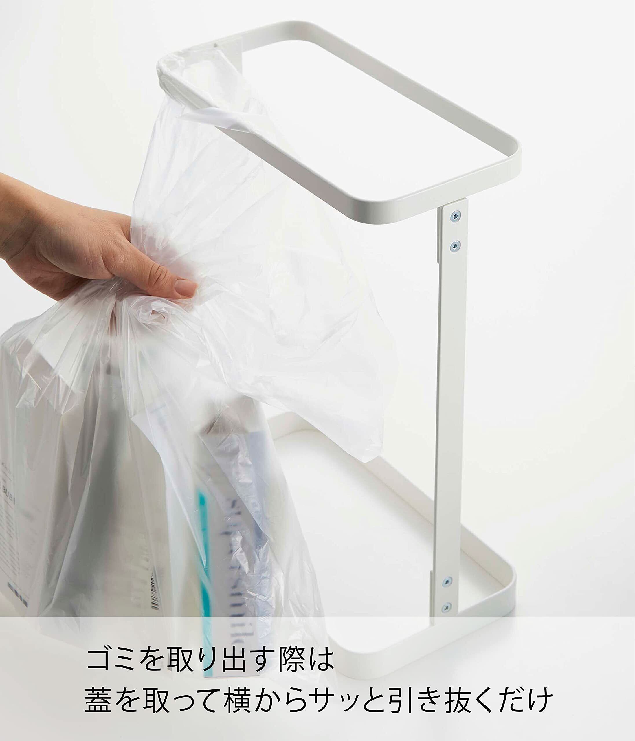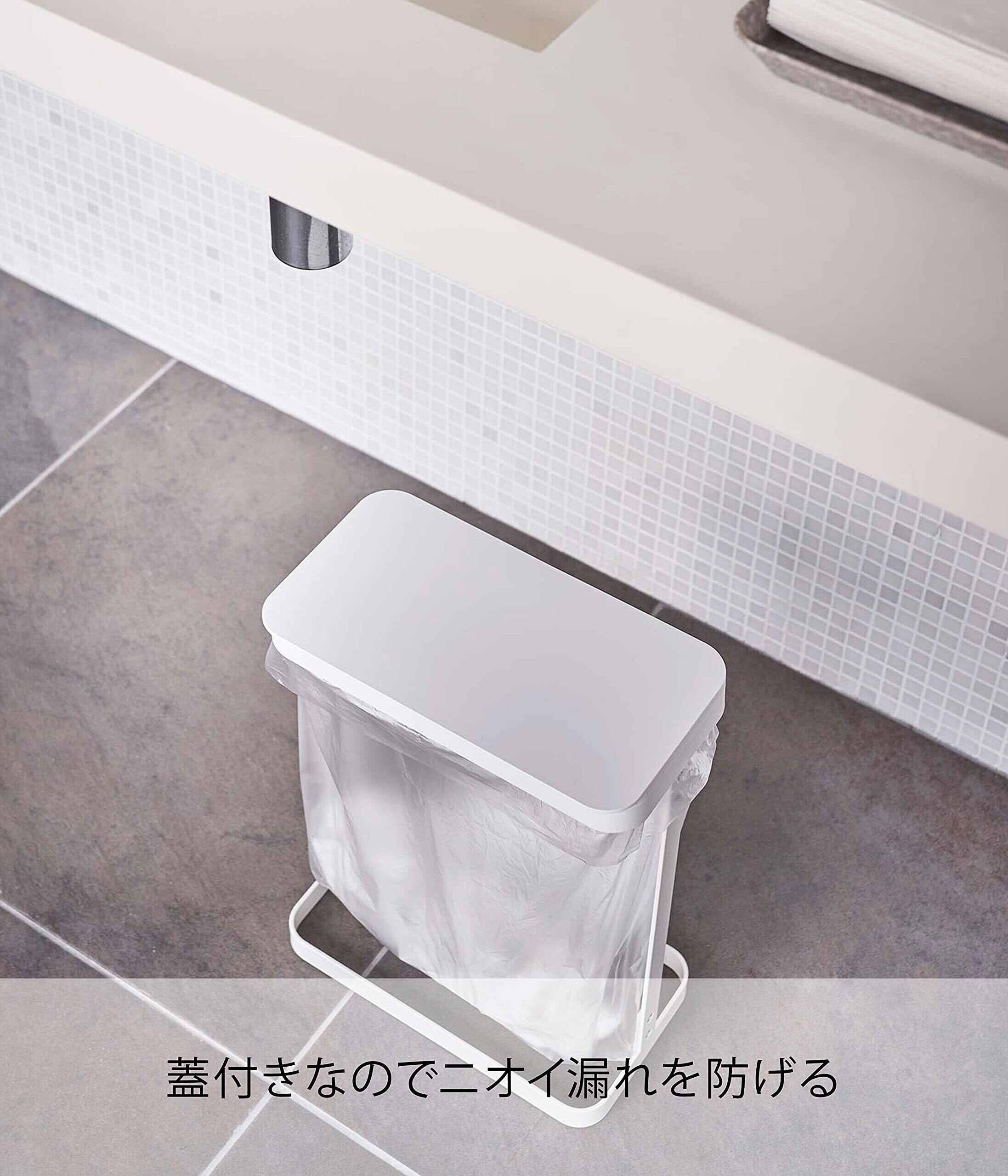 10L~20Lのポリ袋を本体にかぶせて蓋をするだけ! 洗面台の下や横で使えるスリムで便利な簡易ゴミ箱。