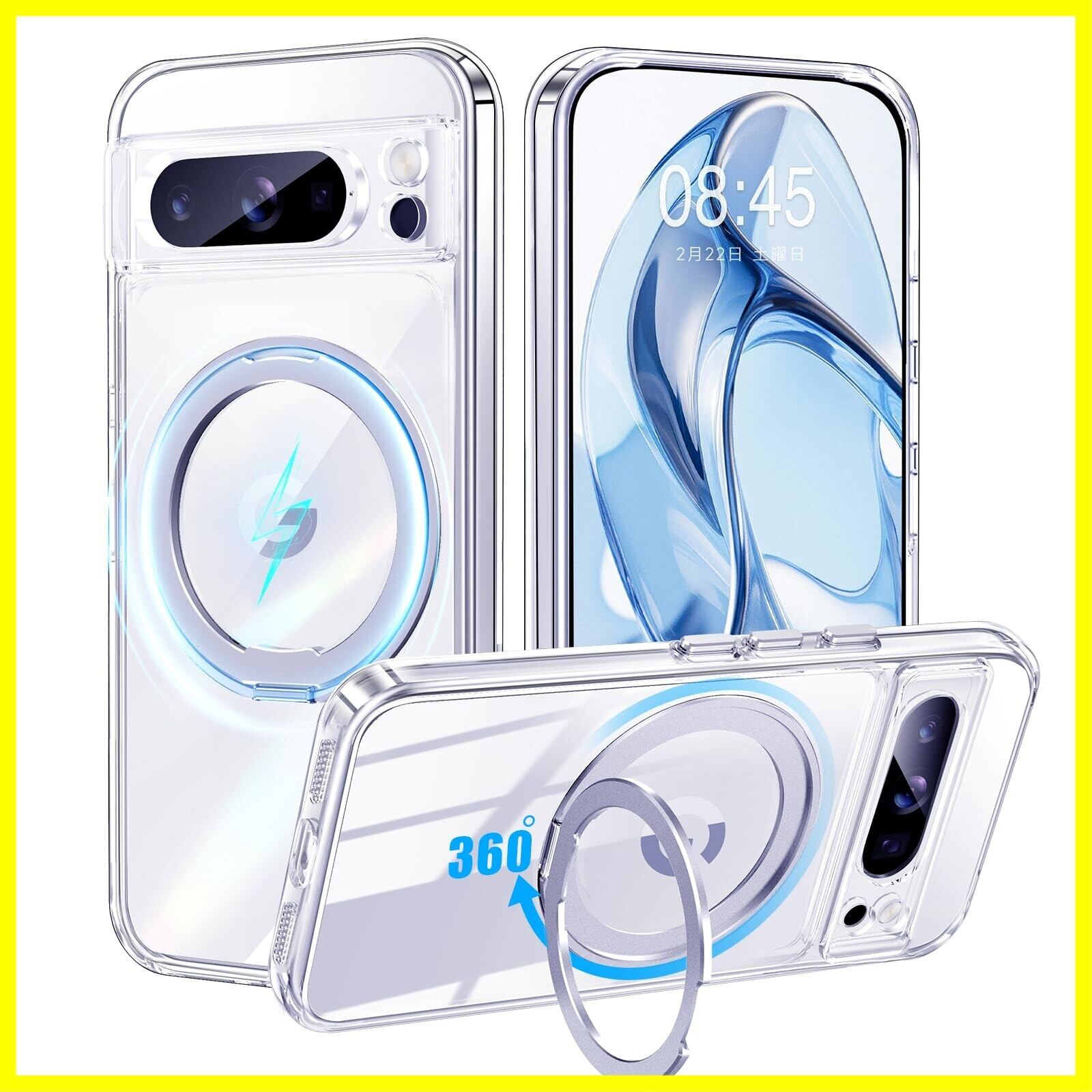 【米軍MIL規格・Magsafe対応】Google Pixel 8 Pro 用 ケース MagSafe対応 リング360°回転スタンド機能 縦横両対応 透明 黄ばみ防止 ワイヤレス充電 レンズ保護 耐衝撃 携帯カバー 6.7 インチ マグネット搭載 車載ホルダー マグセーフ対応 おしゃれ(クリア)