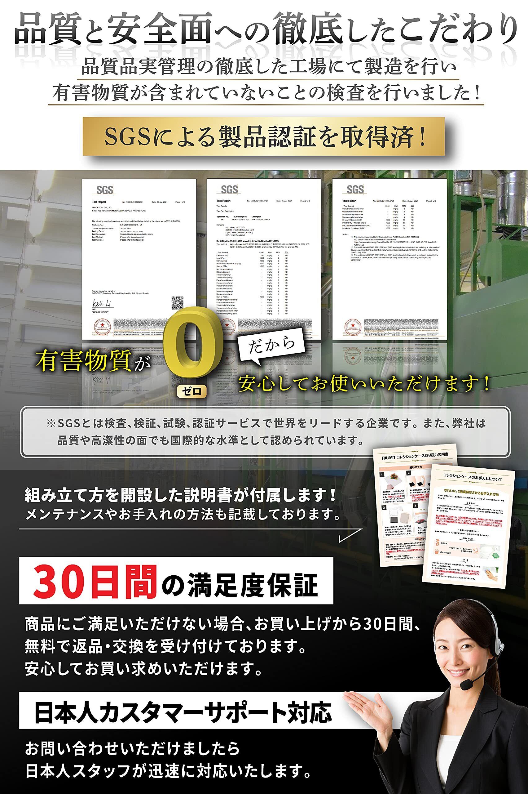 【セット内容】アクリルコレクションケース 本体 防汚れ手袋 クリーニングクロス 説明書 フィルムはがし用円形アクリル