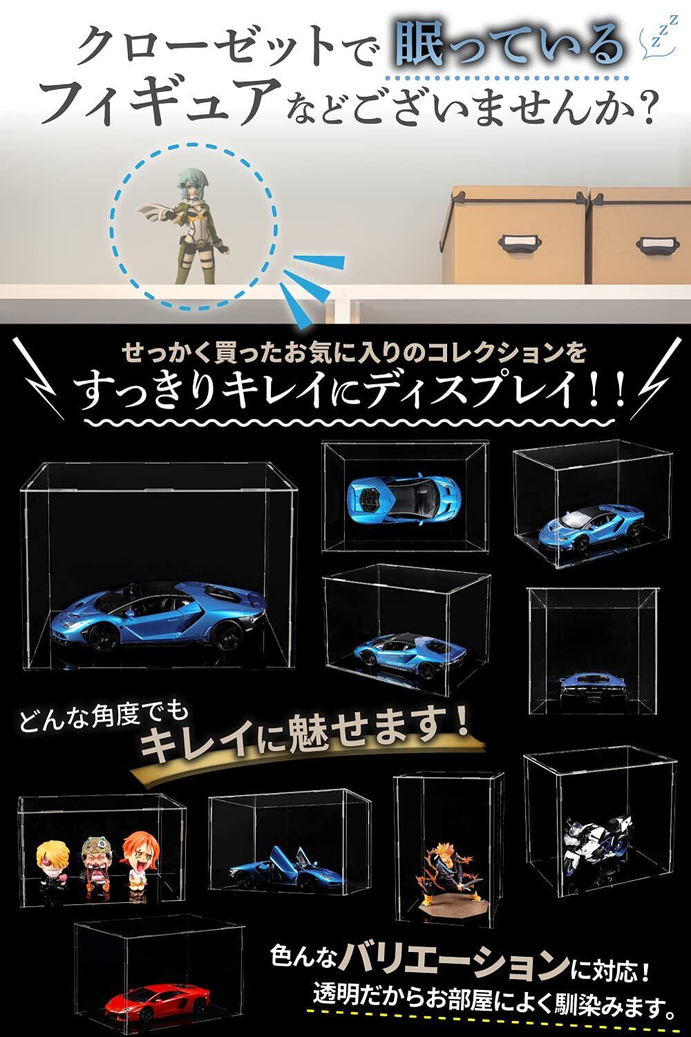 【用途】フィギュア 人形 車 バイク 模型 コレクションなどの陳列に。ほこりや汚れから大切な展示品を守りいつまでもきれいな状態で陳列することができます。