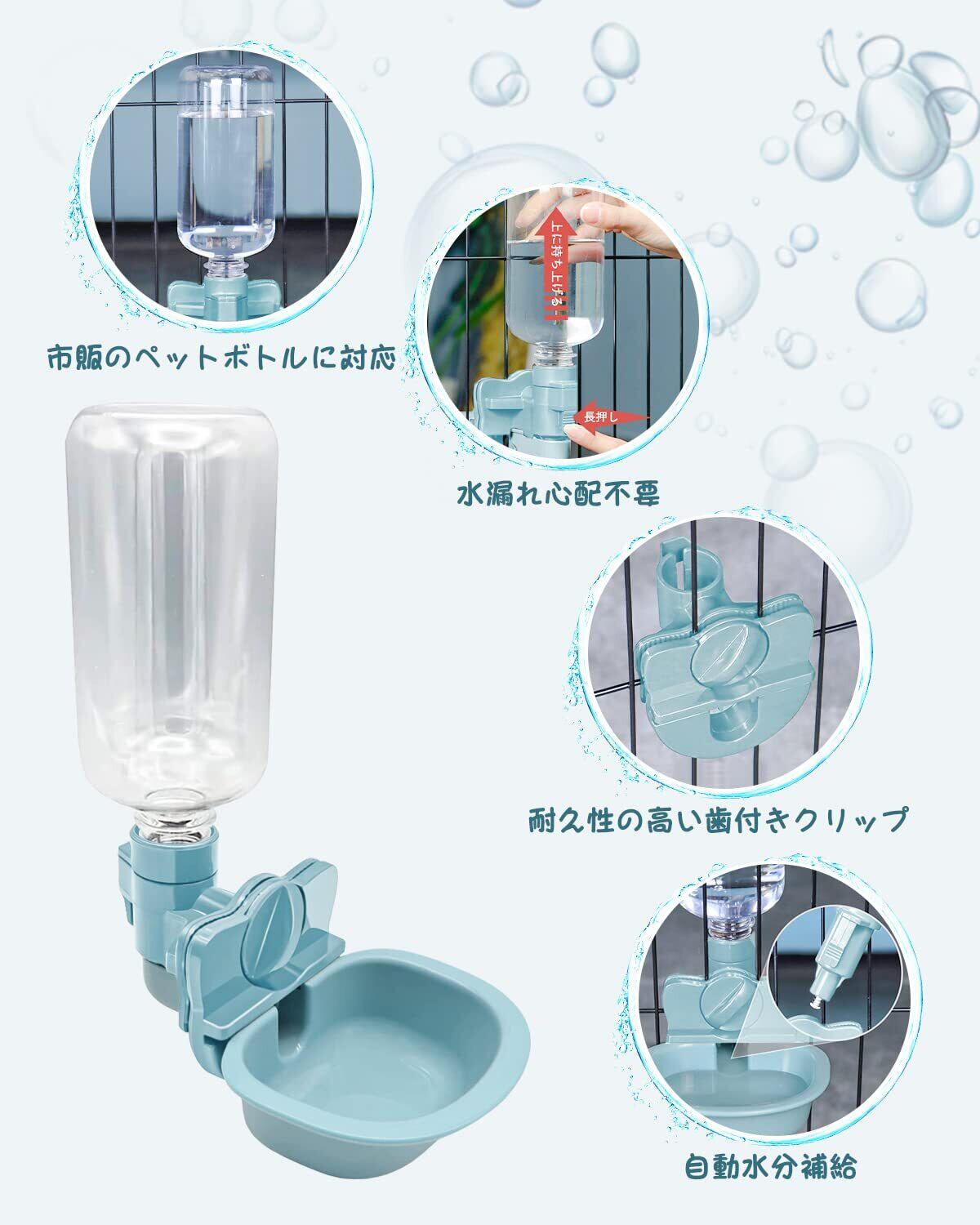 Beraypoo 犬 猫 水飲み器 給水器 ペットボトル 使用可能 ケージ 取付型 電源不要 お留守番対応 熱中症を防ぐ 転倒防止 漏れ防止 ペット用品 (ライトブルー, 水飲み器)